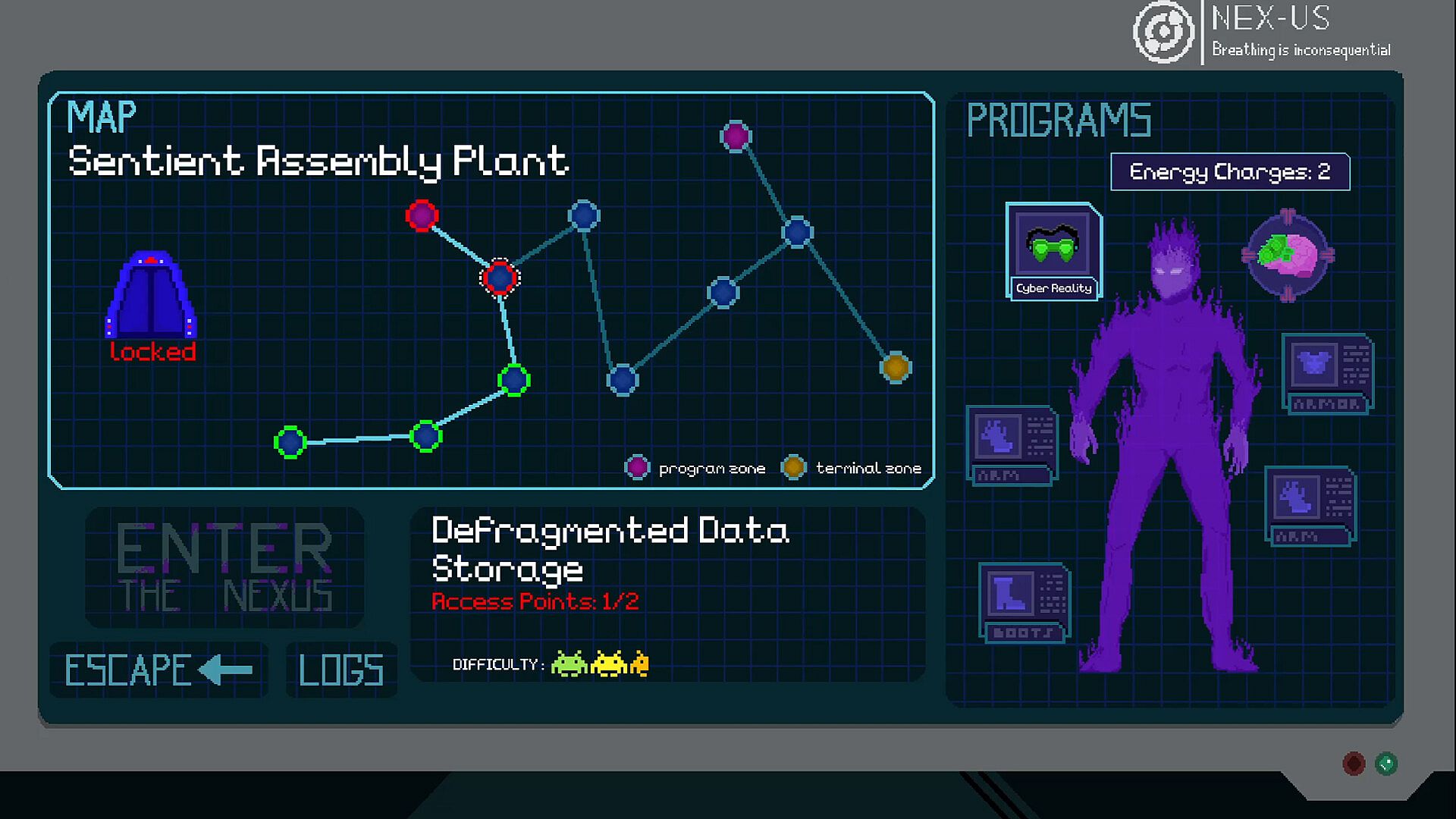 You’ll need powerful programs to speed up your progress and improve your chances of reaching access nodes before being destroyed by the DoomWall.