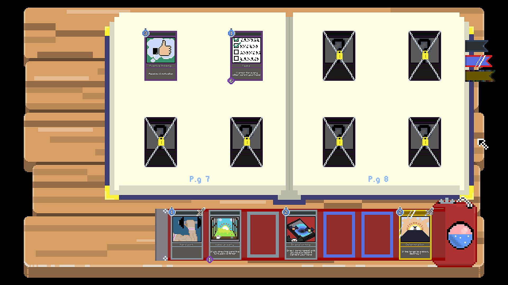 At the beginning of each match, the player is faced with the choice of an aspiration. This choice defines a powerful initial item for your journey. The goal is to build an incredible deck to overcome all temptations and obstacles, ultimately achieving the chosen aspiration.