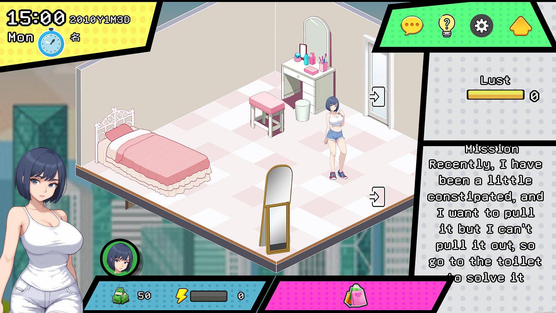 Hi, we are R.Y.Love♂! We aim to create a highly explorable urban life simulation game. Here, you can freely enter different locations, pursue various types of girls, and trigger various events.