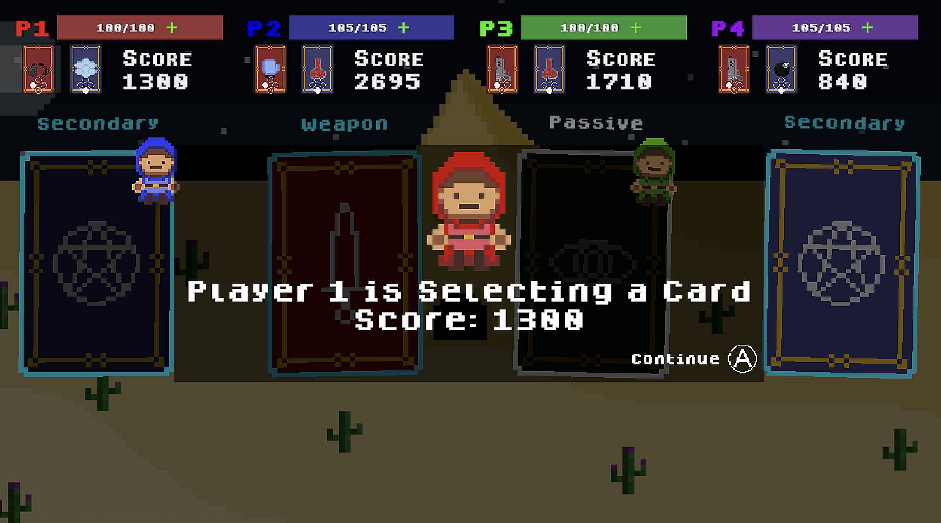 Stand on the pressure plates to start, select your cards and fight your way through the dungeon!