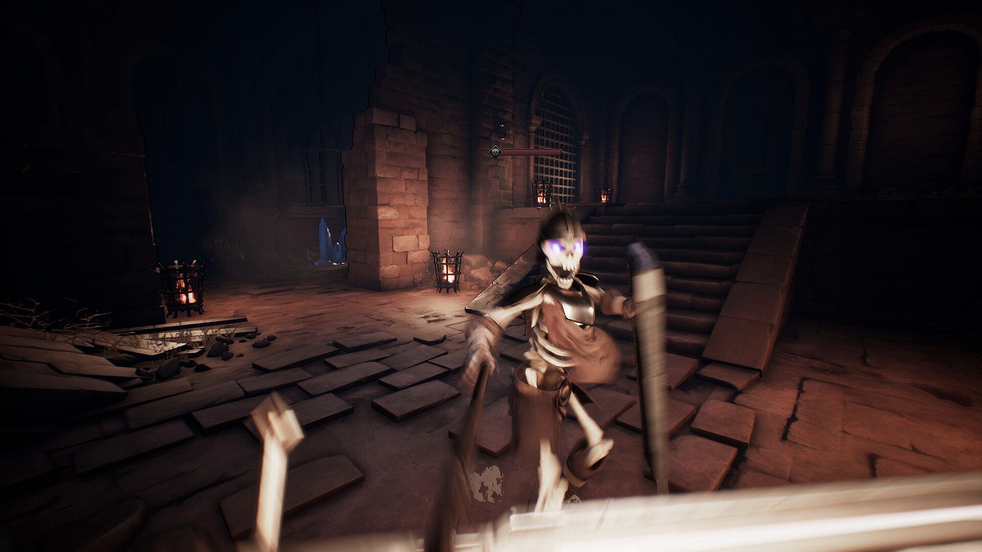 With an ominous, summoned blade at hand, you'll slay your way through hordes of mindless revenant guards. With each failed escape attempt, you will become more skillful. On your escape you'll encounter different enemy types and while some use just a sword, some might even cast occult spells or attack from the air.