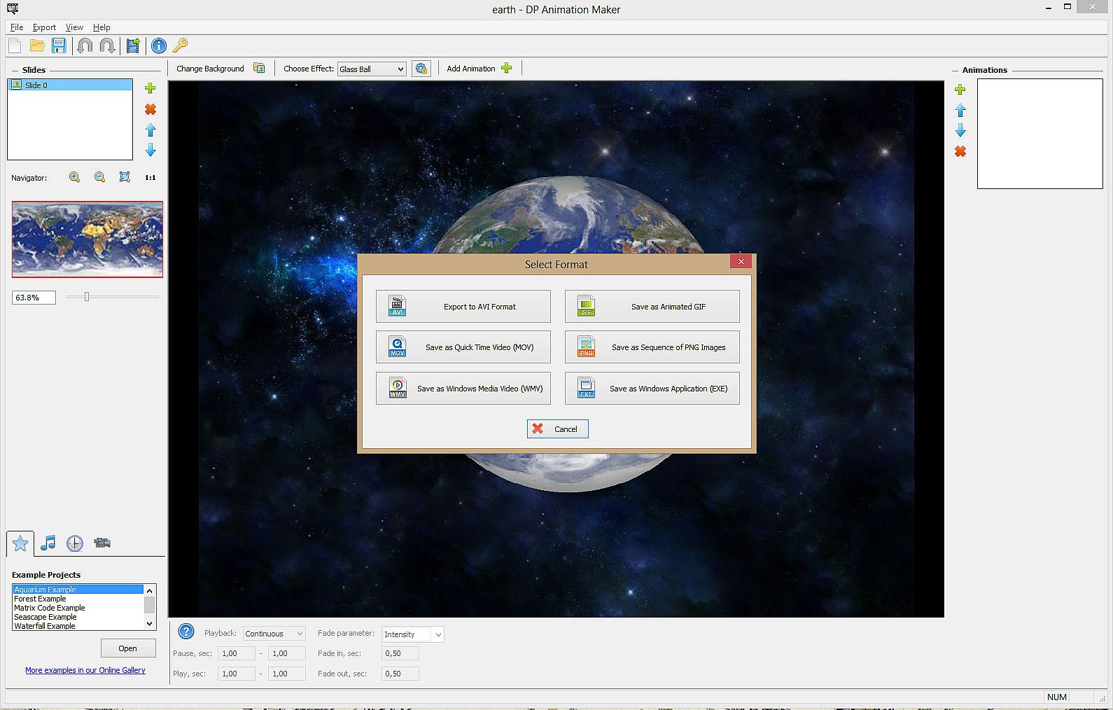 DP Animation Maker supports six output formats with an option that allows you to create seamless animations automatically. With this smart feature you can create a seamless video of any length.