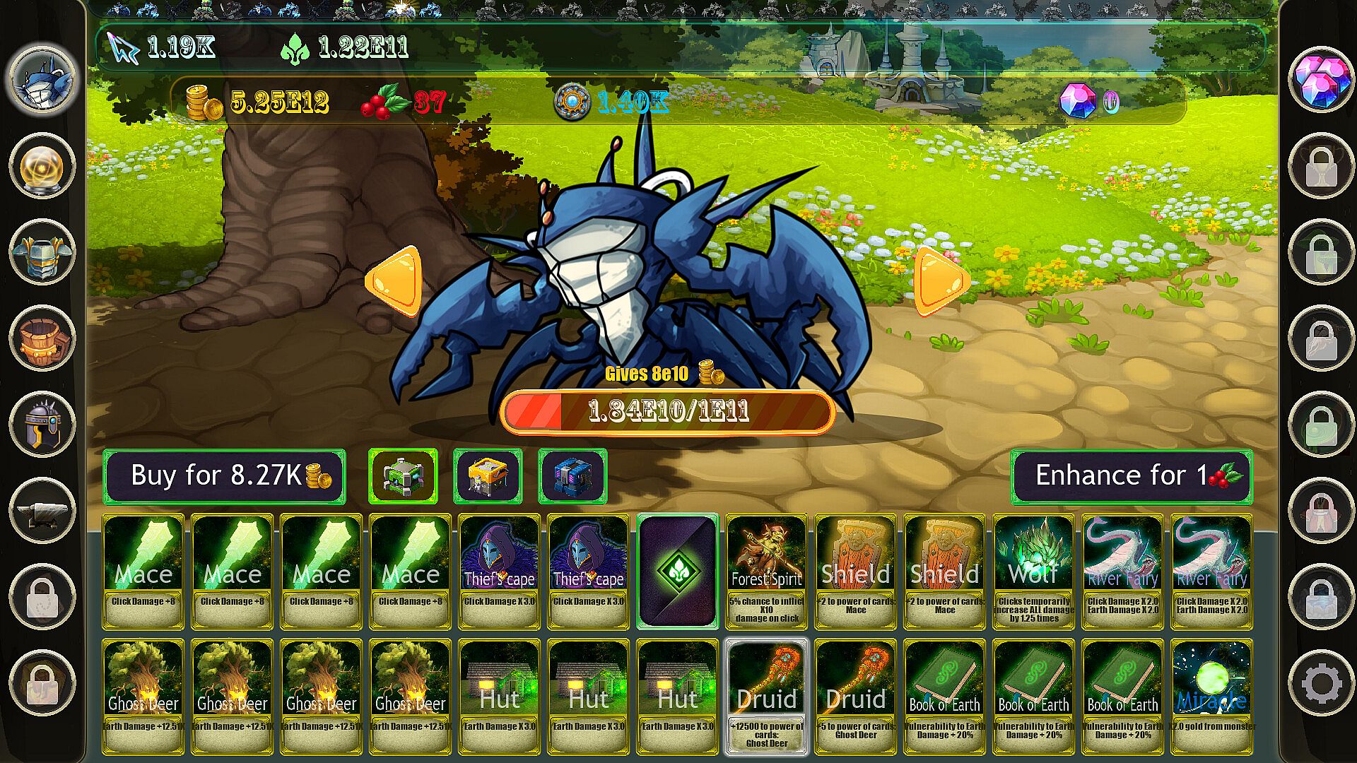 Idle card game with different cards and different decks. Cards can be upgraded in different ways. Decks have different archetypes: click, earth, ice, sun, and so on!