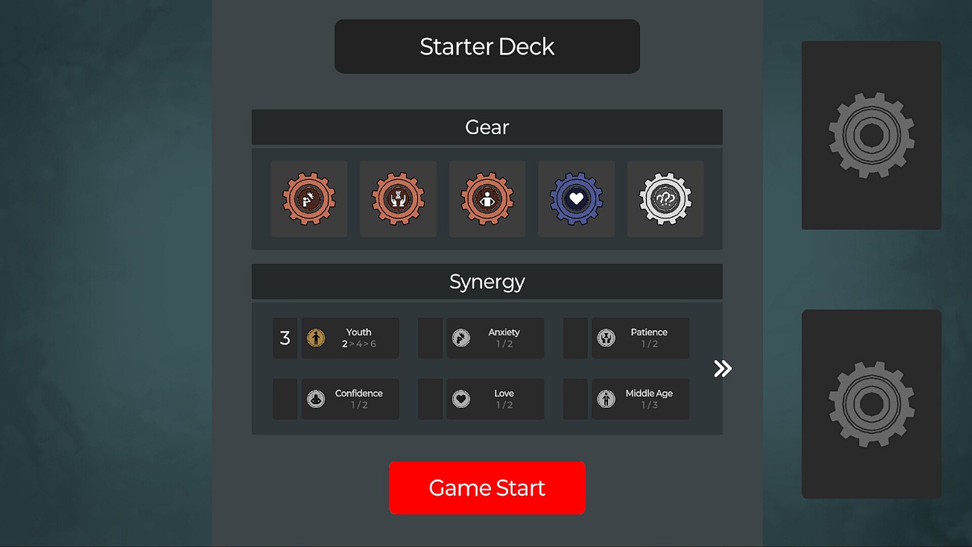 utilize gears with unique synergies. Try to create your own synergy strategy by adding, upgrading, or sometimes removing gears to your deck as a reward for each stage clear.