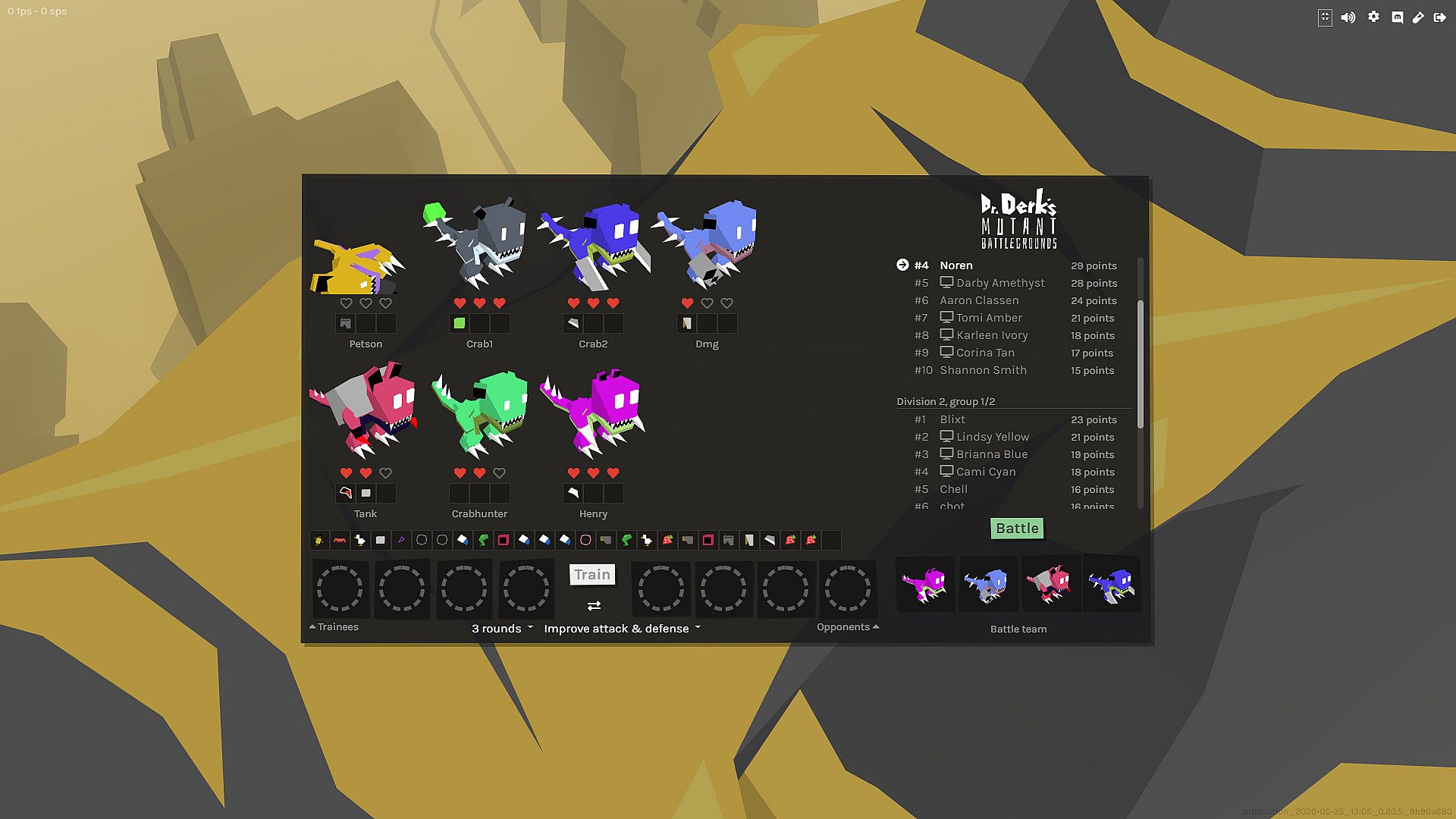 This is a game where you train Derklings, a creature with a neural network brain, to fight for you! The game takes place in a wonky western-themed MOBA setting, and as you battle other players you earn upgrades and items for your Derklings. The challenge is to figure out the best loadout and training strategy for your Derklings!
