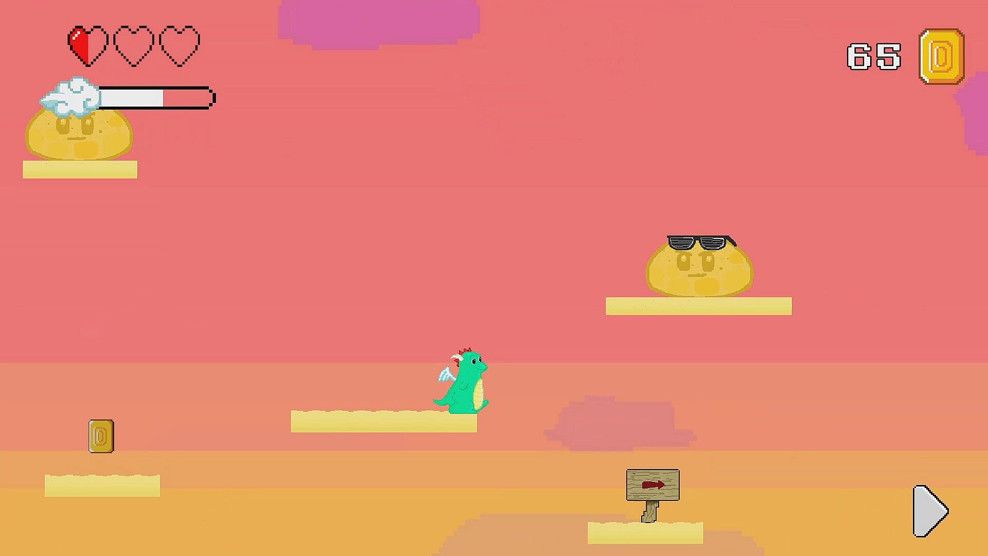 Control a small dragon named Draco in this pixelart-style 2D platform game set in the kingdom of Mugen. Traverse chaotic lands filled with multiple enemies, explore varied routes through levels, and head toward the king's castle to restore peace. Gather coins to upgrade skills along the way.