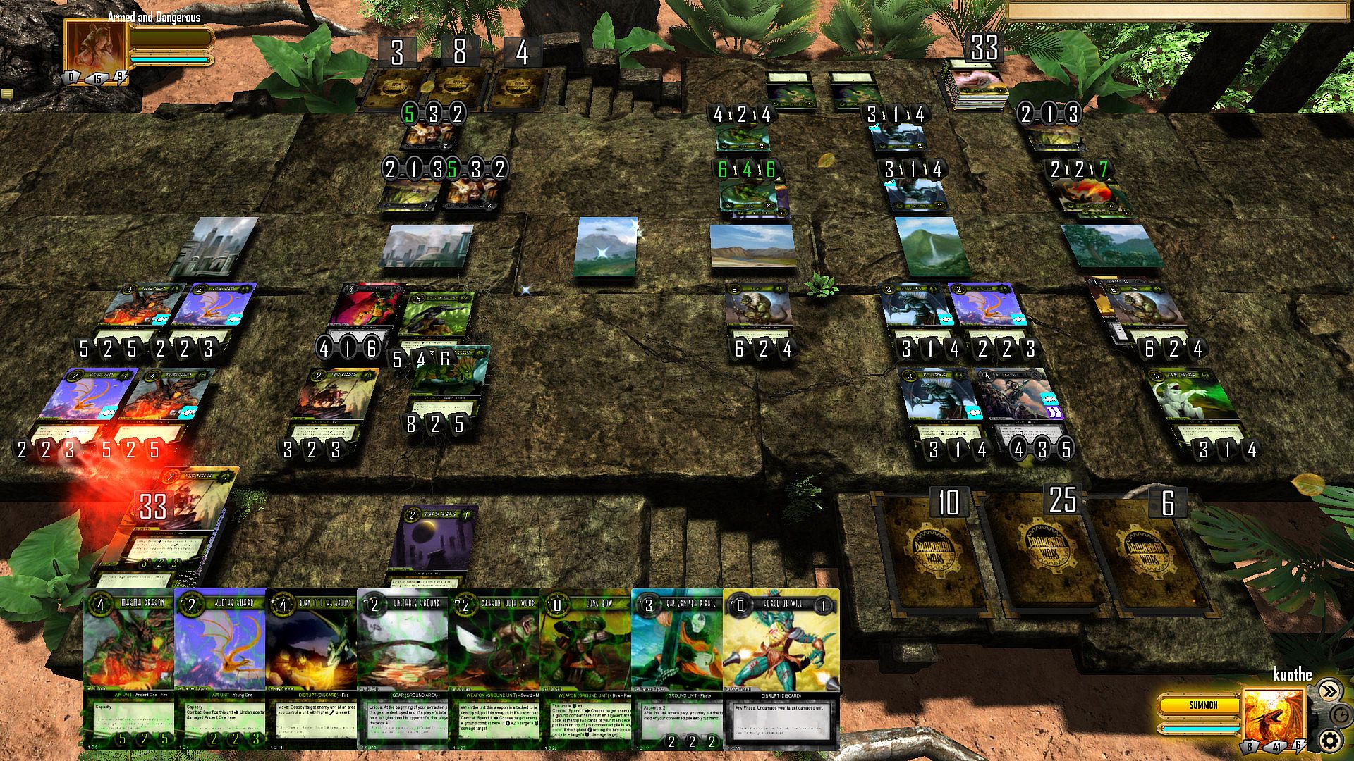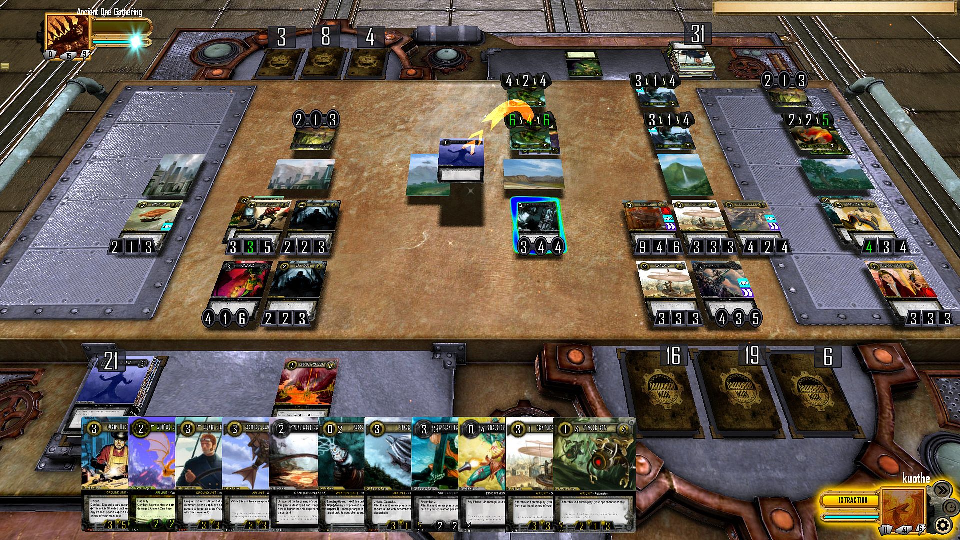 In Draconian Wars players build their decks of 50 cards and try for their opponent to run out of resources. They can accomplish this by controlling as much areas of hyperborea as they can, or just crushing the opponent in battle.