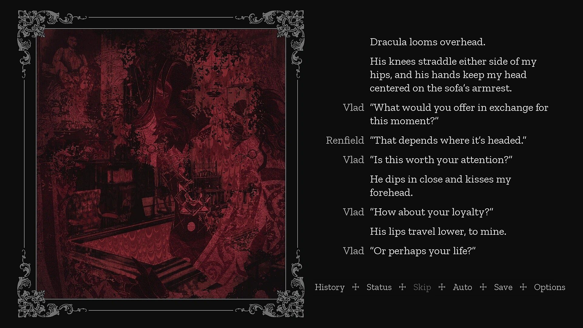 The castle’s inhabitants won’t stand idly by as Renfield meddles in their affairs. Negotiate Renfield’s dynamic with unchosen love interests, Dracula’s Brides, and even the family’s butcher. Friends in one playthrough may be foes in another.