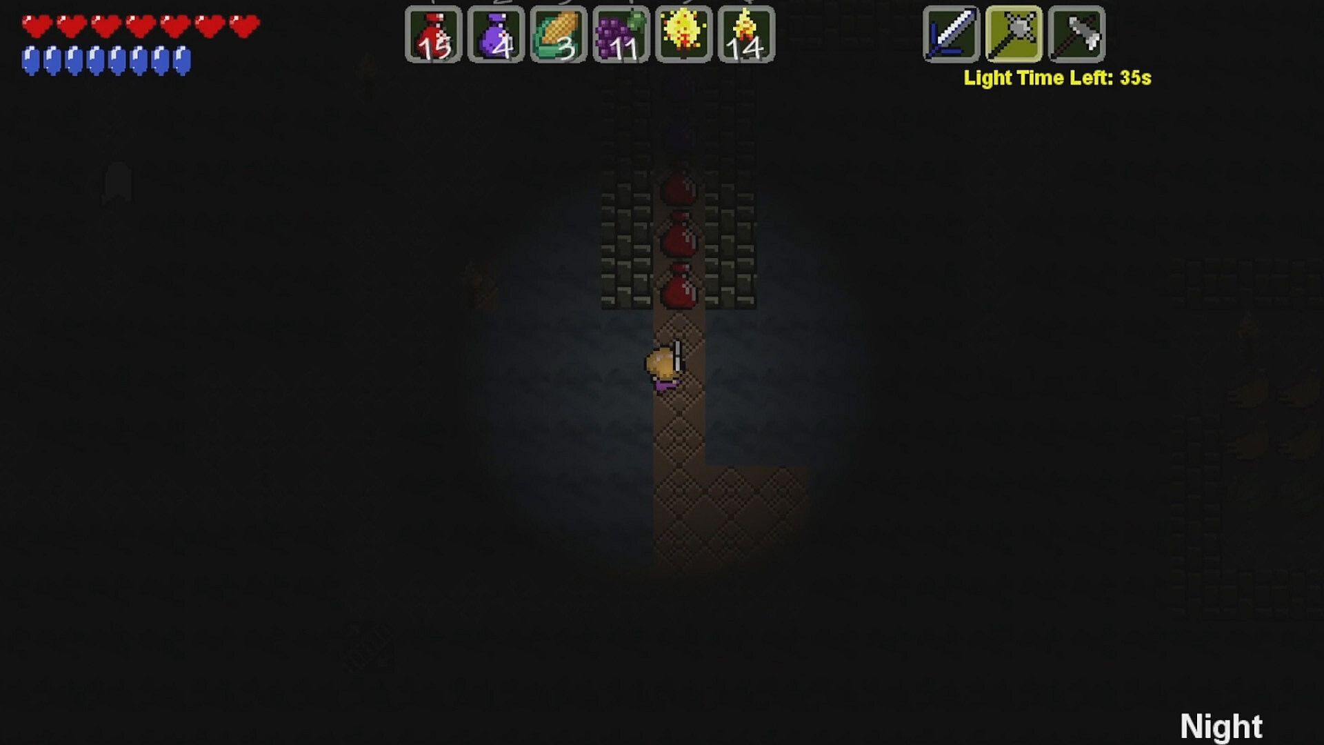 Tools: shovel, axe, pickaxe – used for exploration & progress
