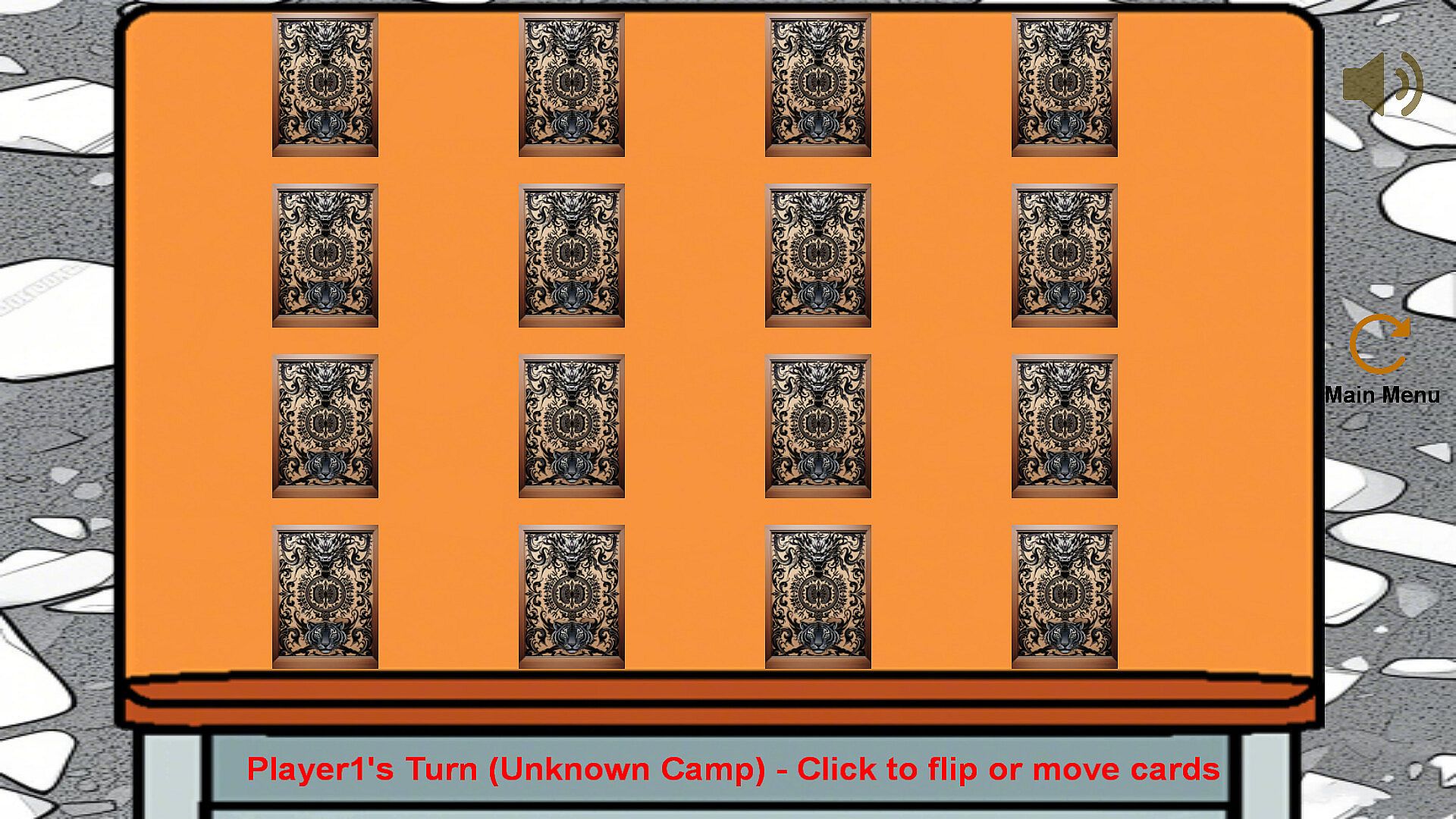 At the start, all cards are face down. Revealing a card determines which camp you control: