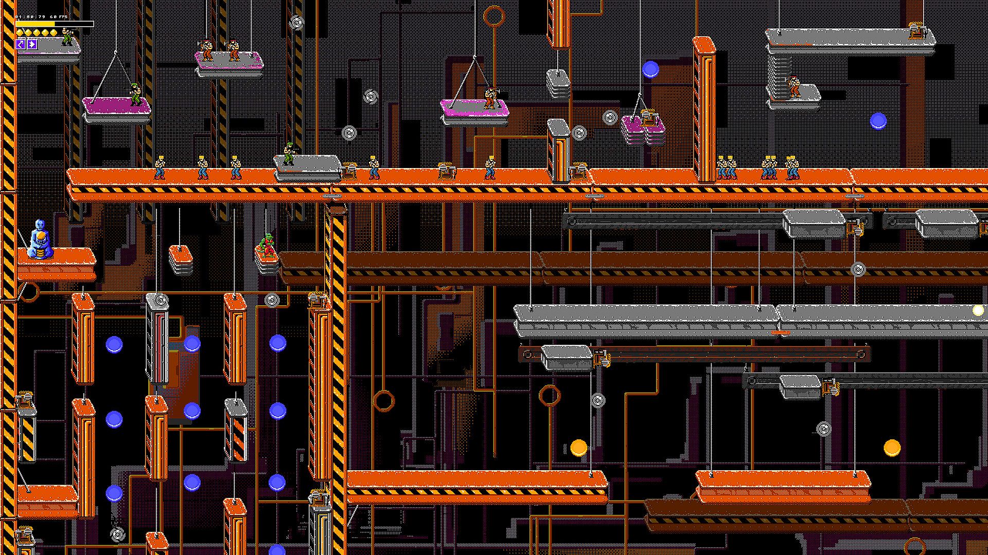 With over 70 hand-crafted levels that contain a variety of unique enemies, bosses and platforming hazards. Record your replays, Race your own replays and compete in the Steam Leaderboards for the perfect score.