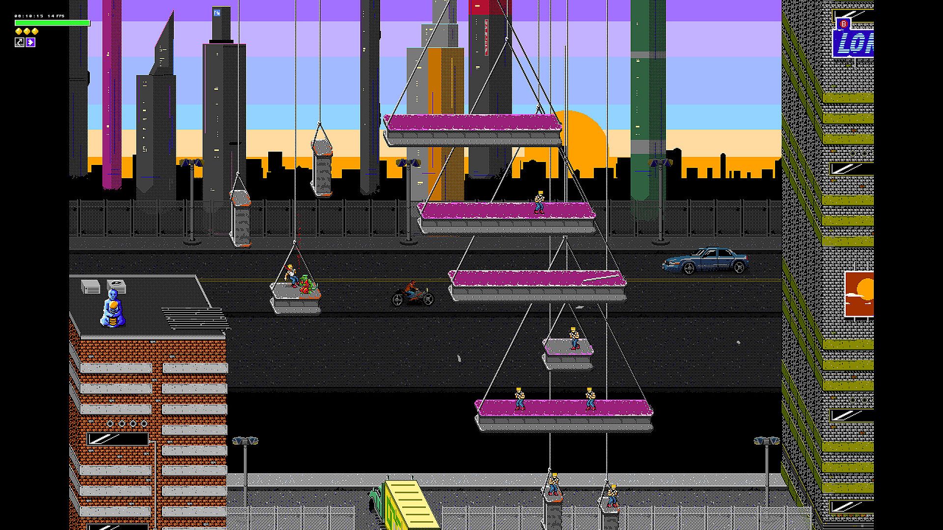 Master pixel-perfect platforming in this retro indie action platformer packed with bloody combat. Race through over 70 hand-crafted levels filled with unique enemies, tough bosses, and tricky hazards like teleporters, gravitational physics, and environmental effects. Wall climb, sprint, jump, and super dash across precise platforms, leaving foes in your wake. Record replays to race against your own runs or top the Steam leaderboards for perfect scores. Boosters and gongs launch you to new heights amid intense challenges. Fans of classic 1980s console platformers crave this solo-dev gem's replay-driven competition and precise action.