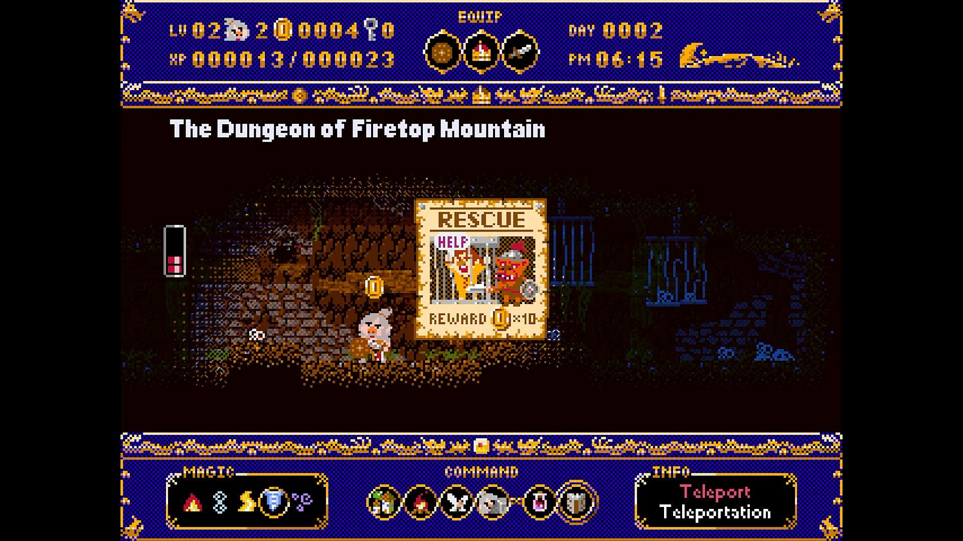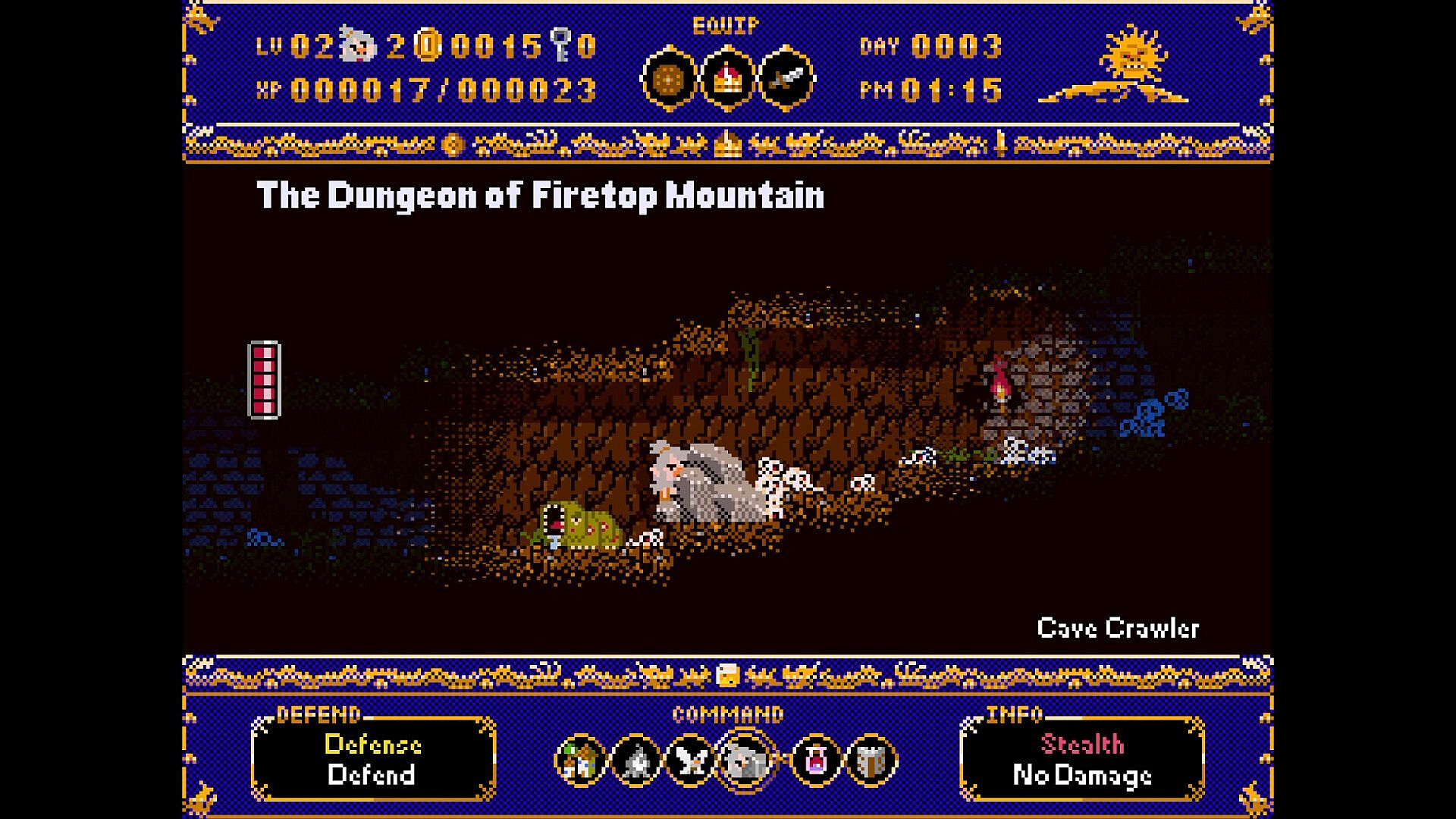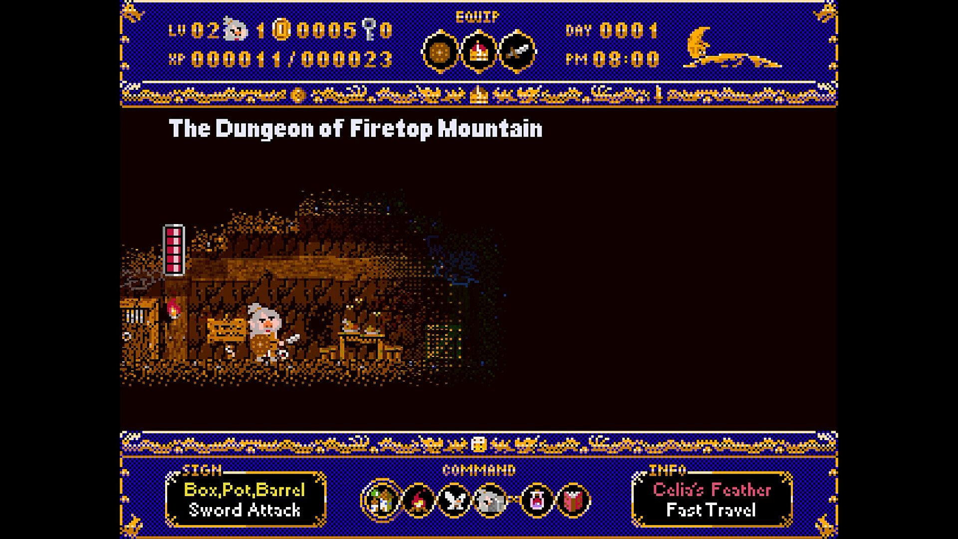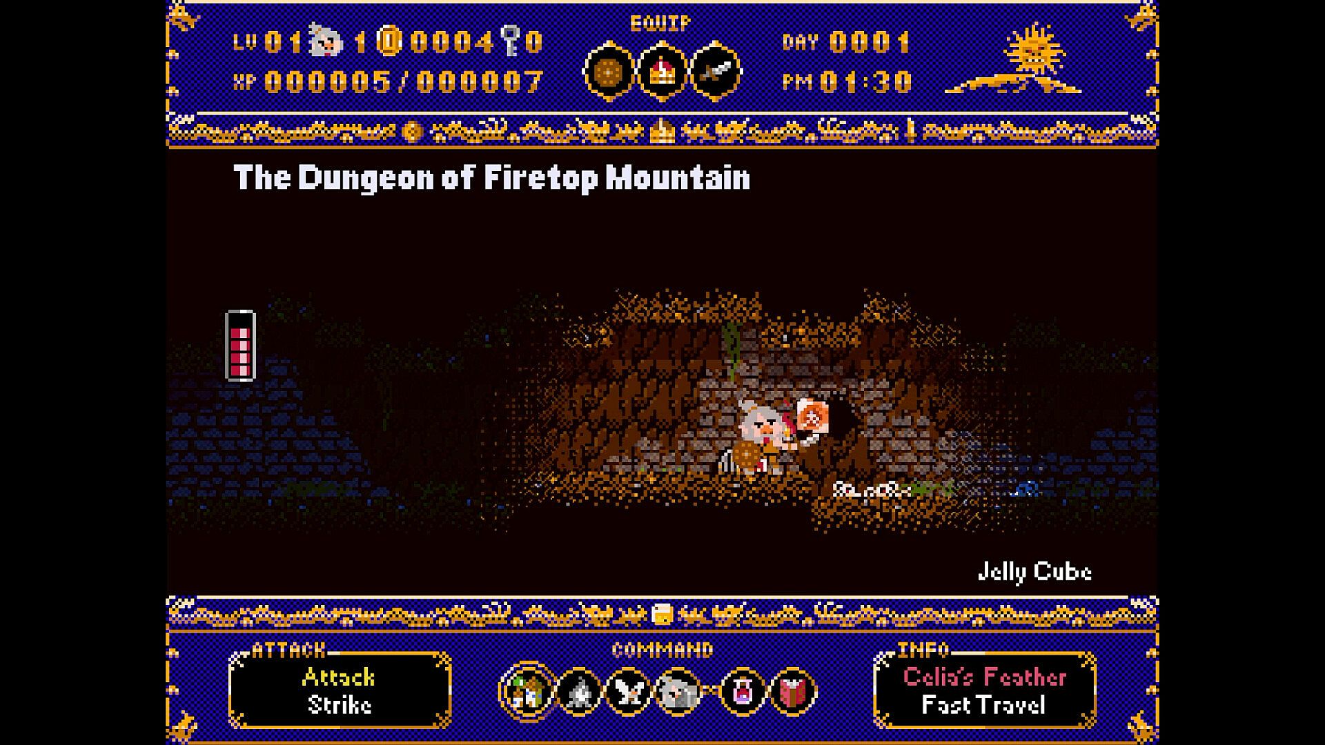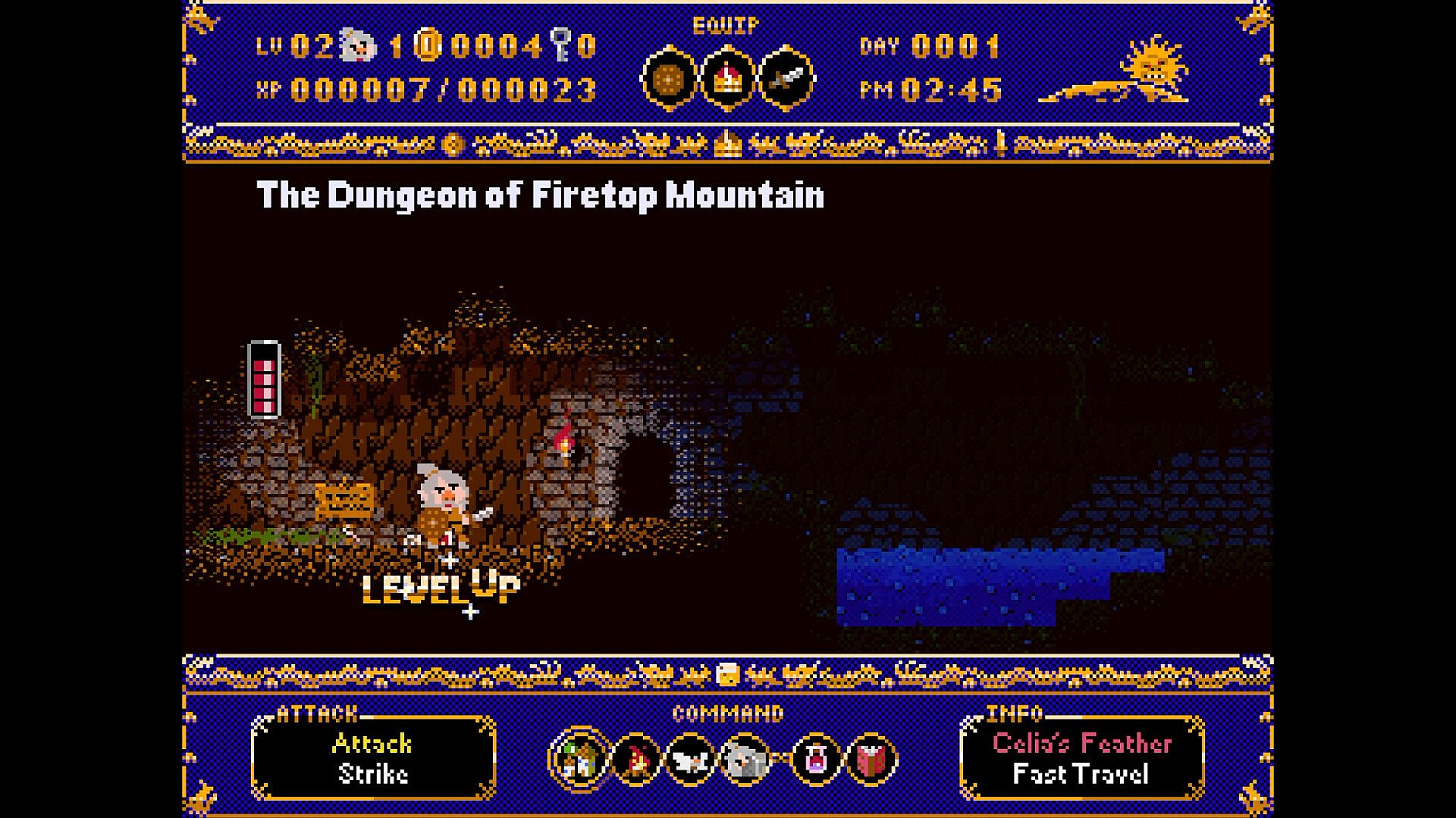 Explore the Firebreath Mountain dungeon, use key items wisely, collect powerful Dragon Buster relics, and prepare to face the Red Dragon once more.