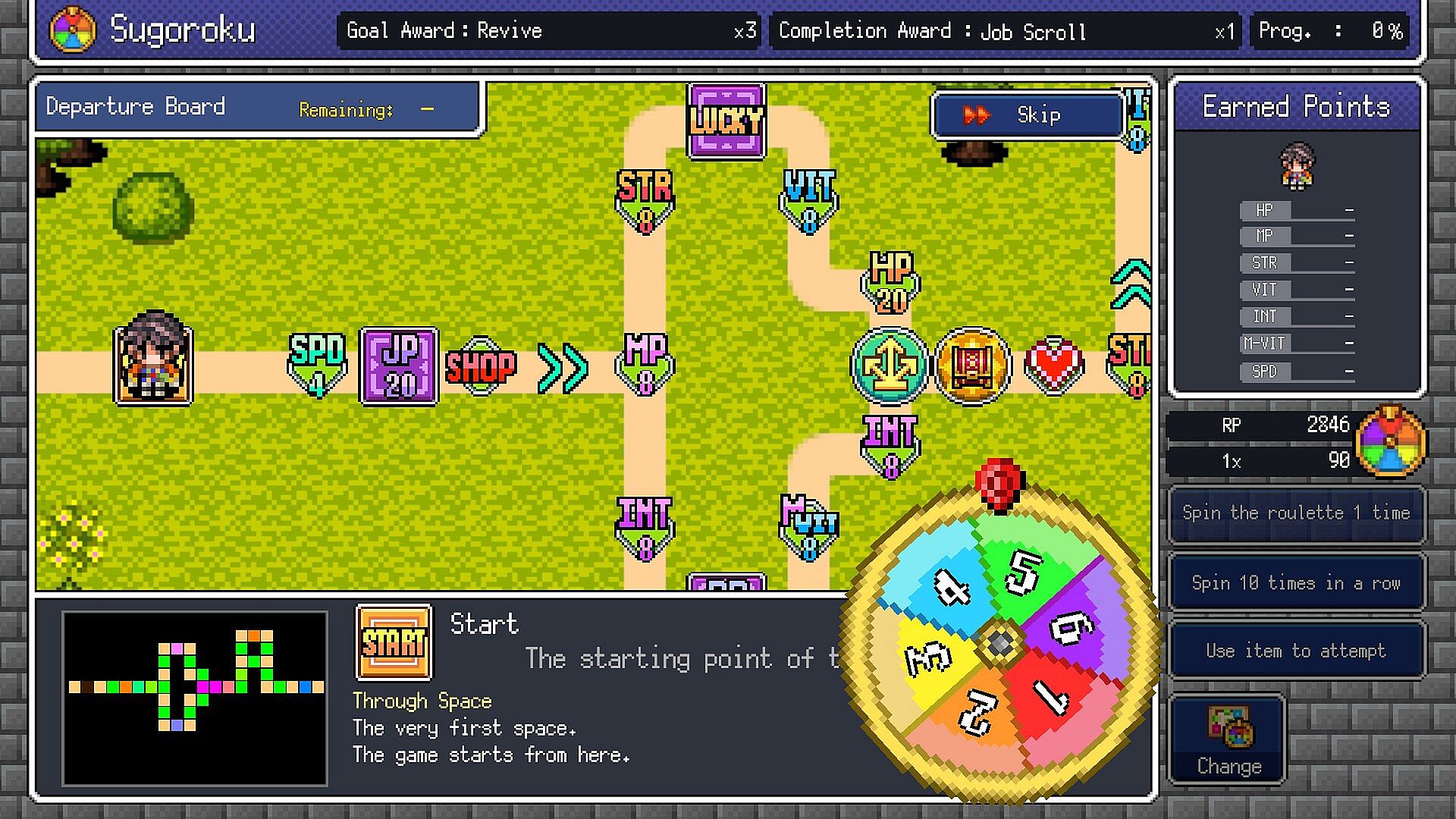 Use RP earned from battle to play the Sugoroku Board!Land on stat spaces to power up your entire party!