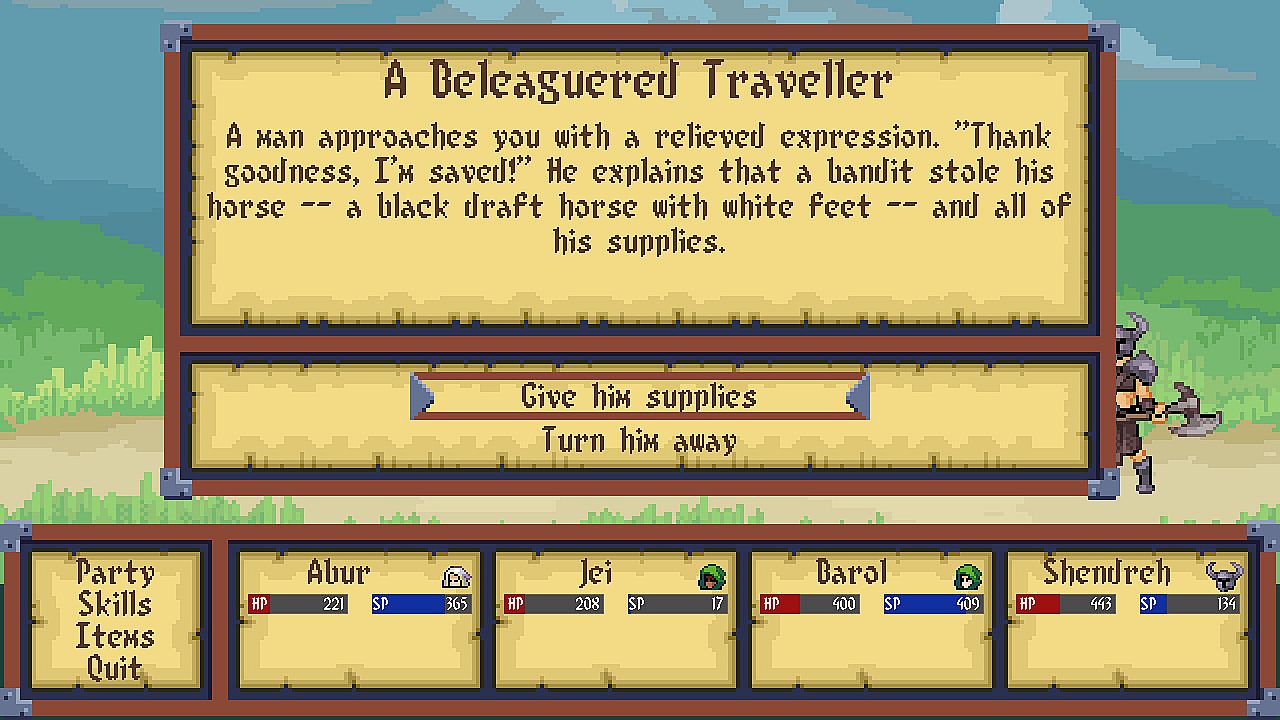 - Fight bandits, cross rivers, and maybe even rescue a lost kitten as you encounter random events on your adventure.