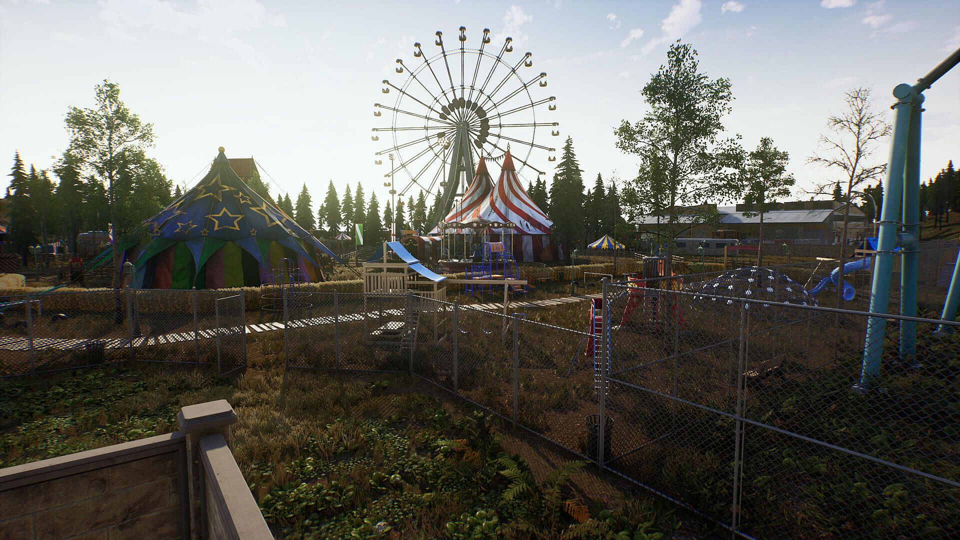 Play as an alien from Exomon stranded on Earth's hostile island of San Tecla, a 64 km² expanse of lush landscapes. Survive by fighting humans and creatures, crafting weapons like bulletproof vests and respawn points, and building upgradable bases through four levels from wood to alien tech. Explore with cars, quads, or spaceships that hook enemies with light beams and fire lasers.