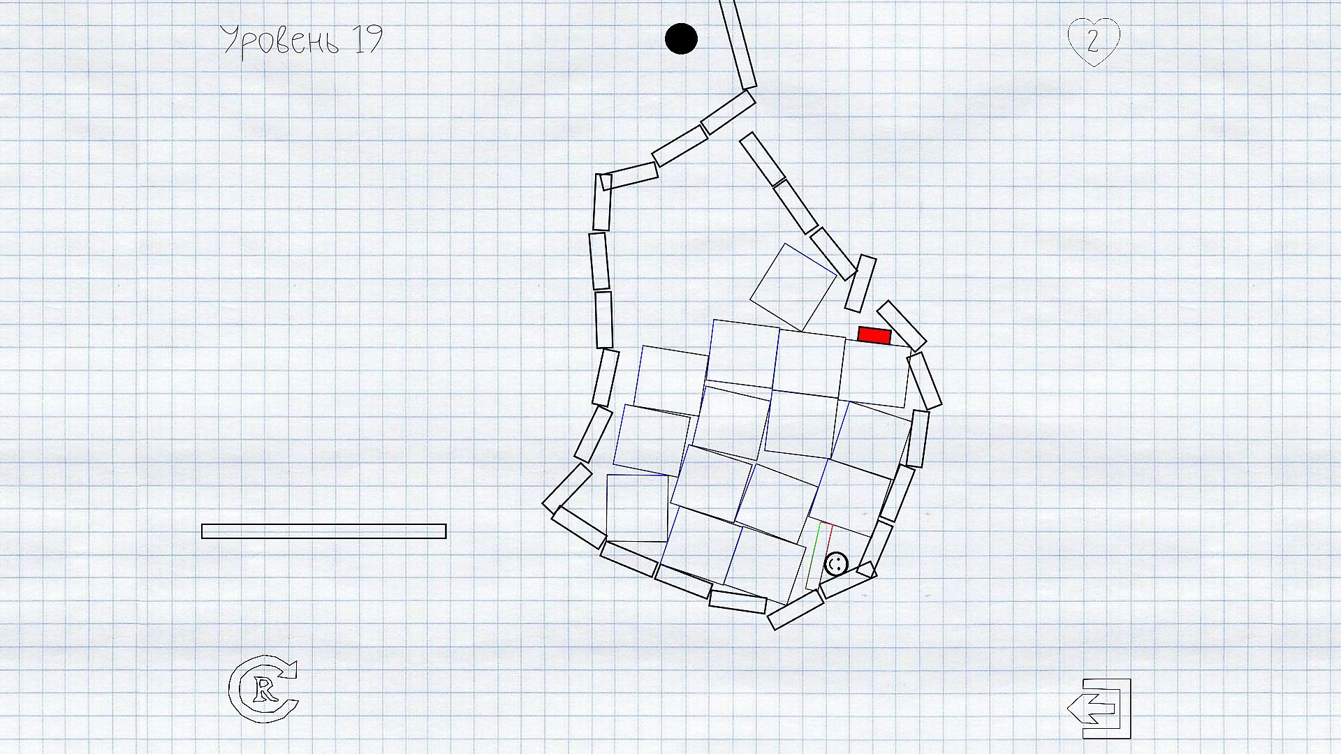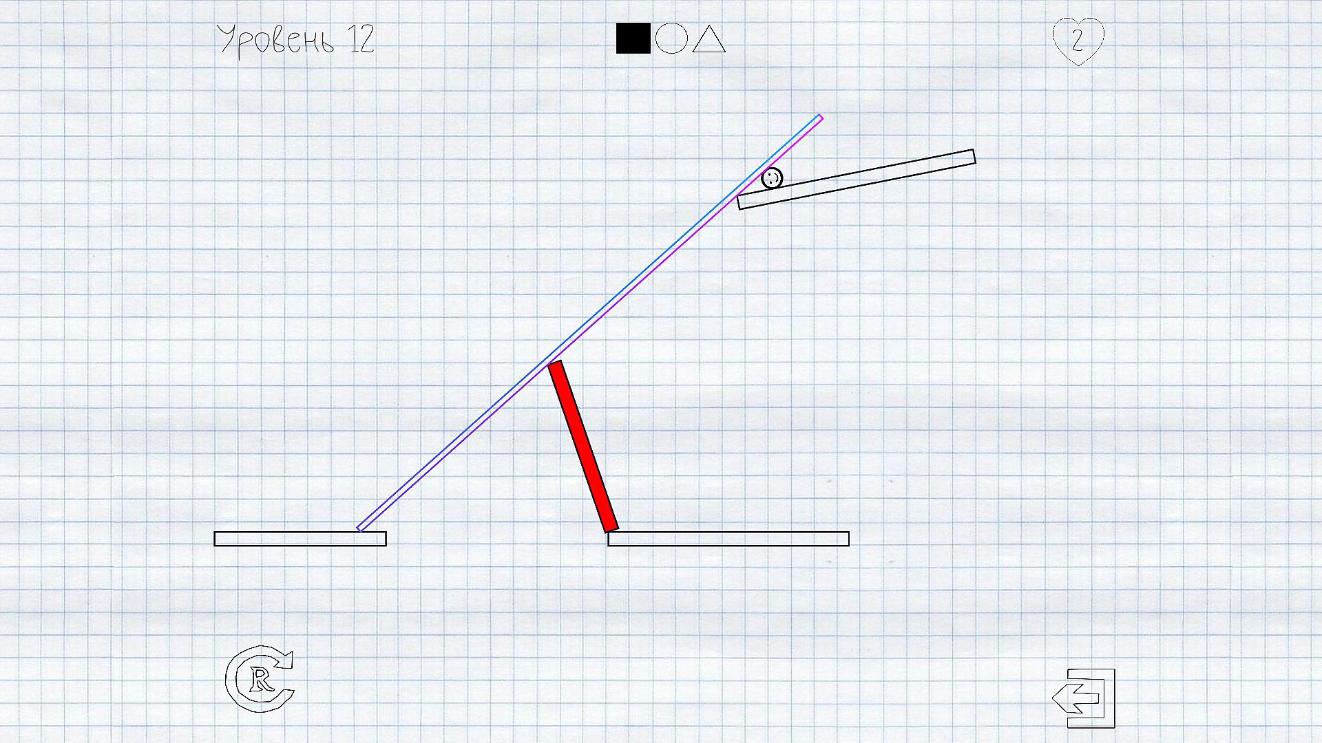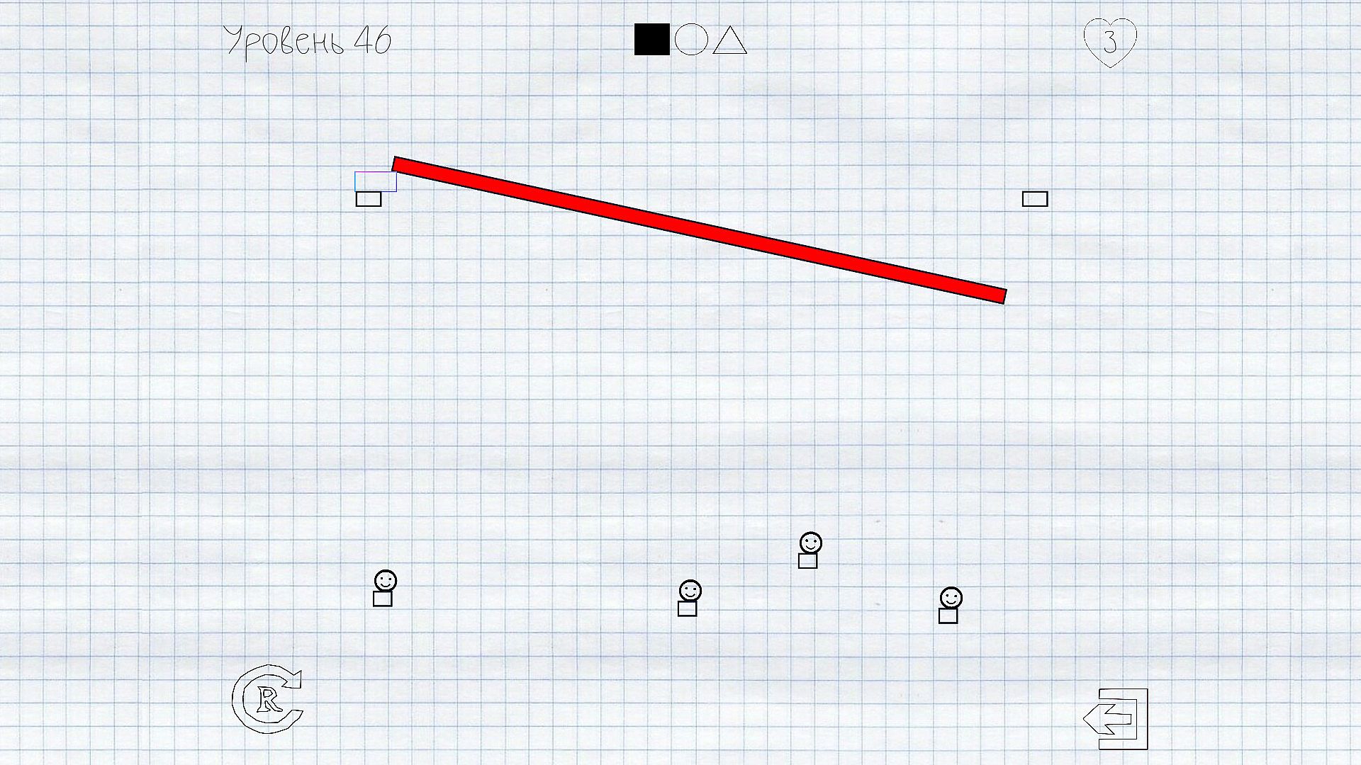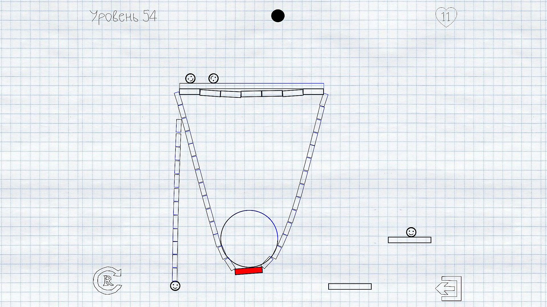 With the help of drawing and physics - help the smiley to get to the platform.