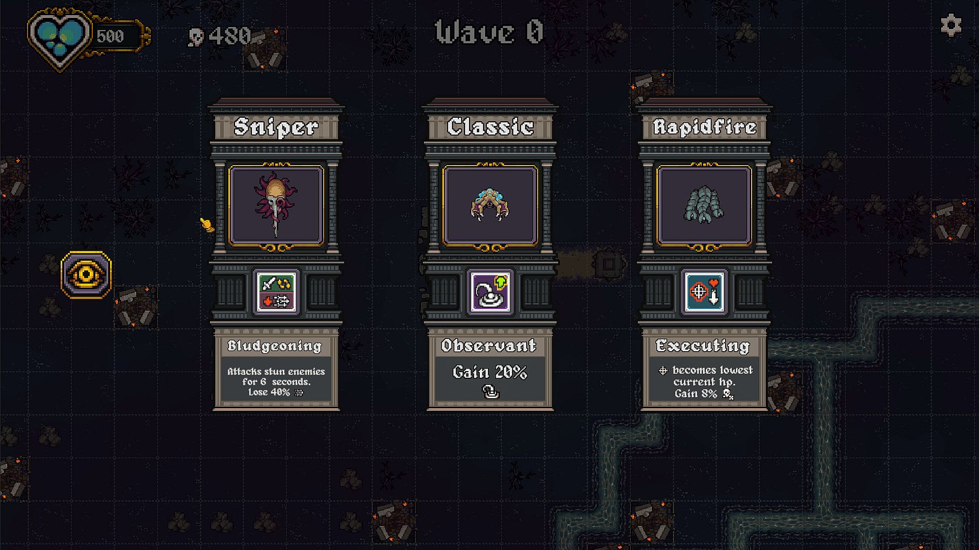 The deity selection influences starting powers, providing variety in how players approach defense. Path shaping ensures that placement decisions have long-term impacts, turning each run into a puzzle of positioning and timing.