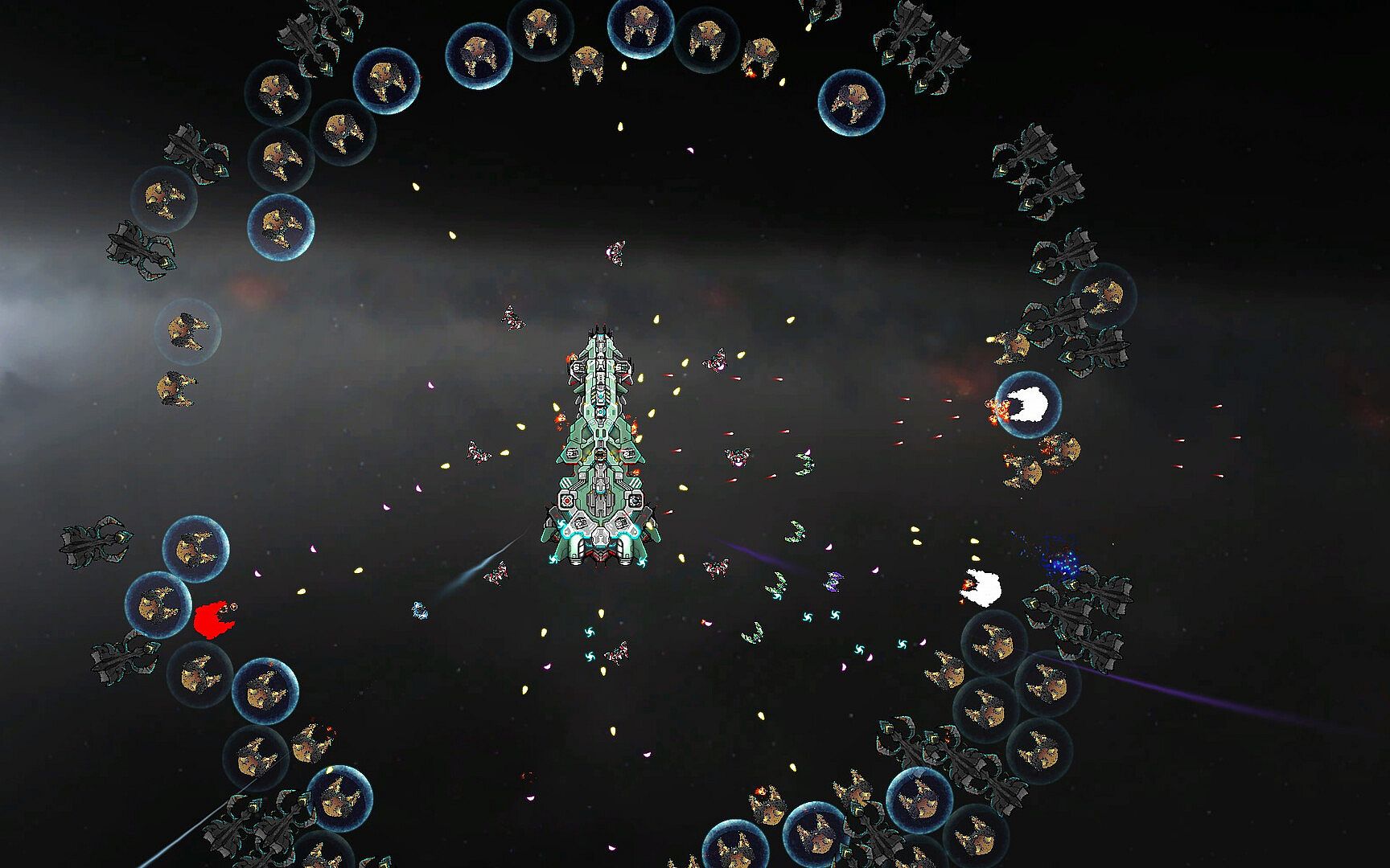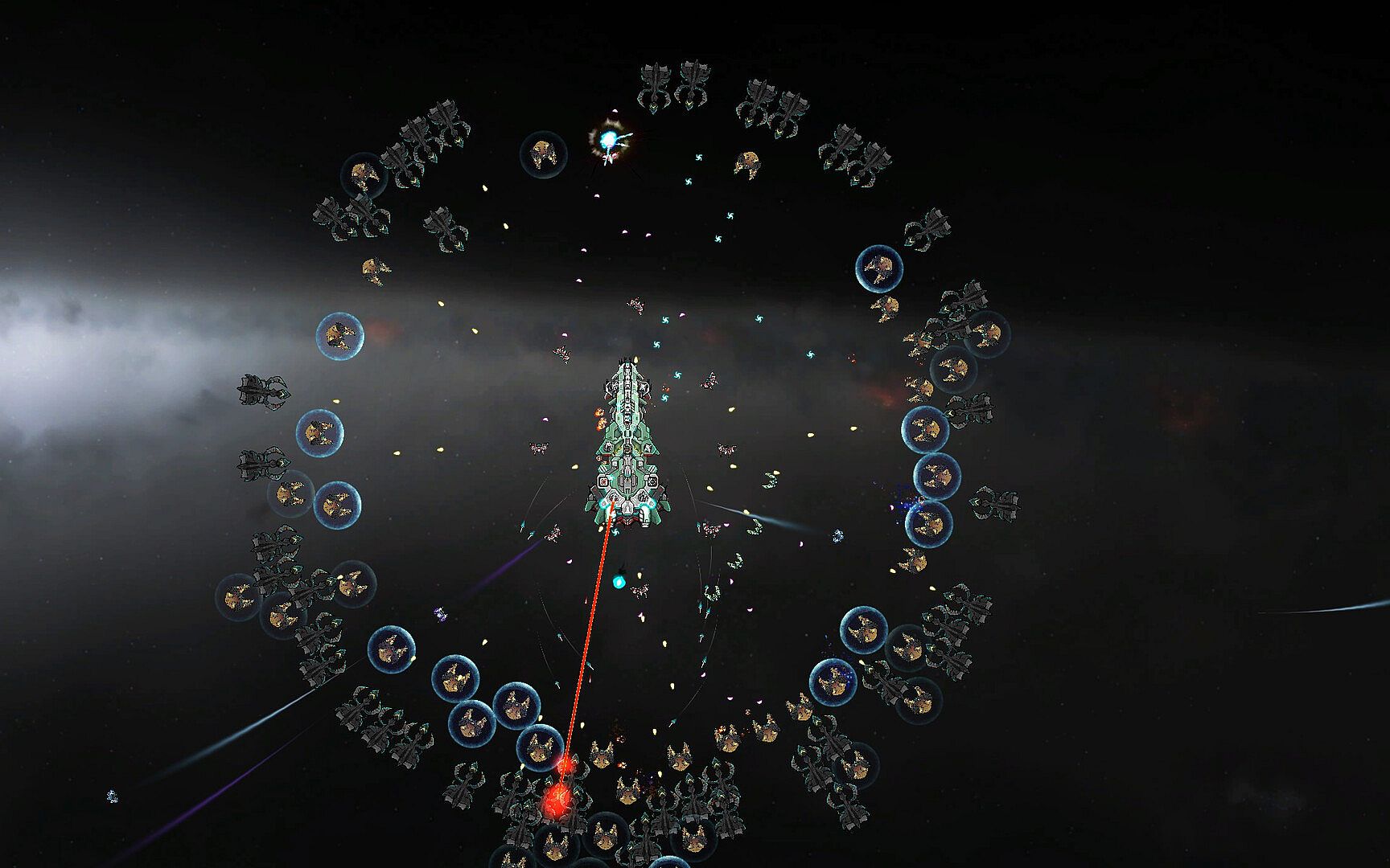 Dreadnought is a mix of Action Tower Defense Survival and Shoot 'Em Up Bullet Hell with light Rogue lite elements where you control the ships turrets and defend against waves of enemies until you can jump to safety.