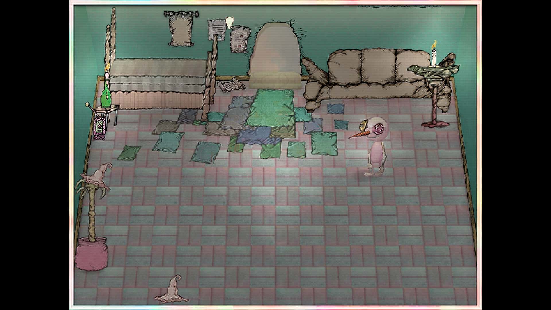 Interacting with a particular object or character in the game gives you a item. These items can be used to change the look of the main character.
