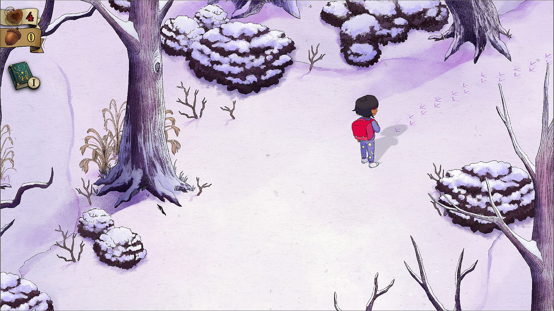 You're a small child who has run away from home in the middle of the night. Now, you find yourself trapped in a strange forest filled with storybook creatures and terrifying nightmares. Each day you must push yourself a little further to explore the forest before your RESOLVE runs out, and fear drives you back to your cozy little cottage.