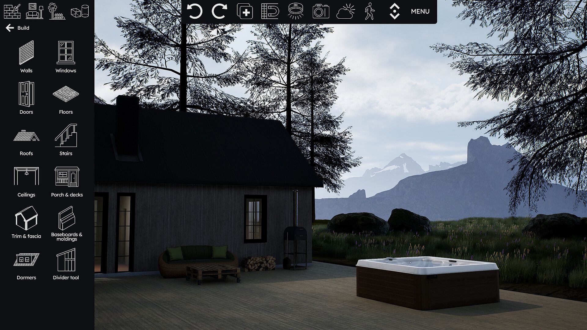 Shape the perfect roof, modify the ceilings, decorate the garden, place furniture, make a balcony or a porch. It's all up to you!