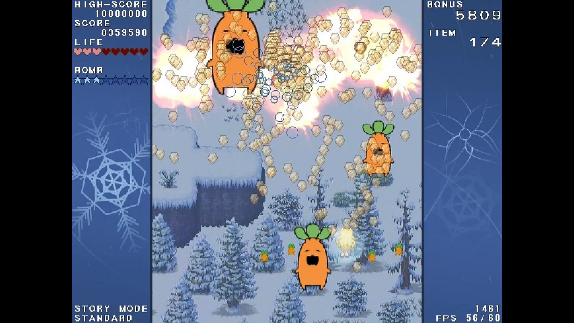 The gameplay of this title is a "bullet hell (danmaku) shooting game."