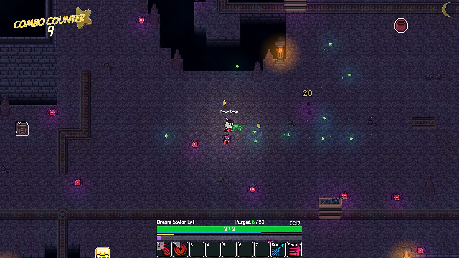 Dream Savior is a cute roguelike survival game where you must fight your way through hordes of Nightmares. Defeat nightmare bosses, level up your character, upgrade your Dream Converter for better starting gear, unlock new characters and spells, dine on good food and raise pets to help you survive the nightly terrors.