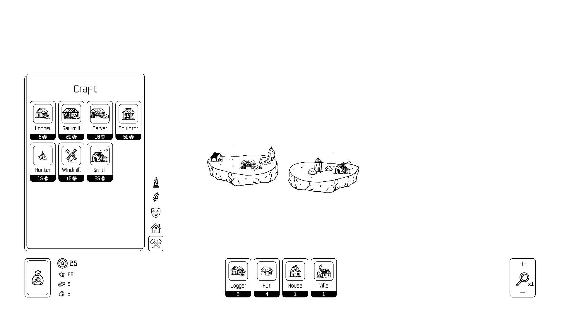 The game features a distinctive hand-drawn black-and-white art style, inspired by cozy book illustrations and the aesthetics of handcrafted drawings. You can save your completed settlements and even print them out, turning them into coloring pages for relaxation and creativity (provided you have a printer).