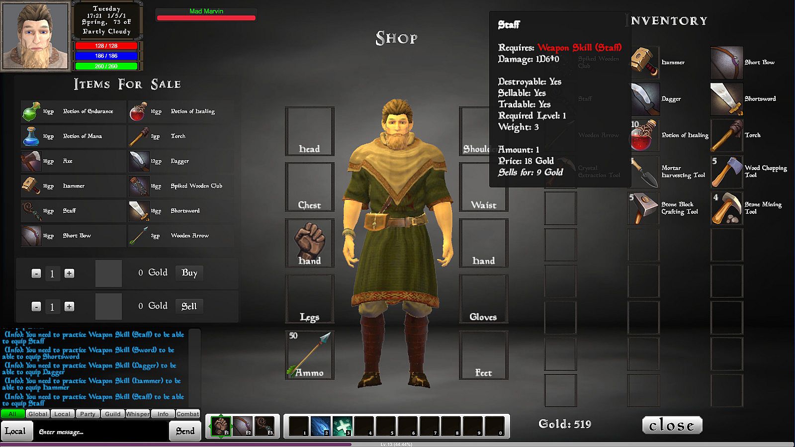 - Complete the simple quest to receive weapons and learn how to use them in combat
