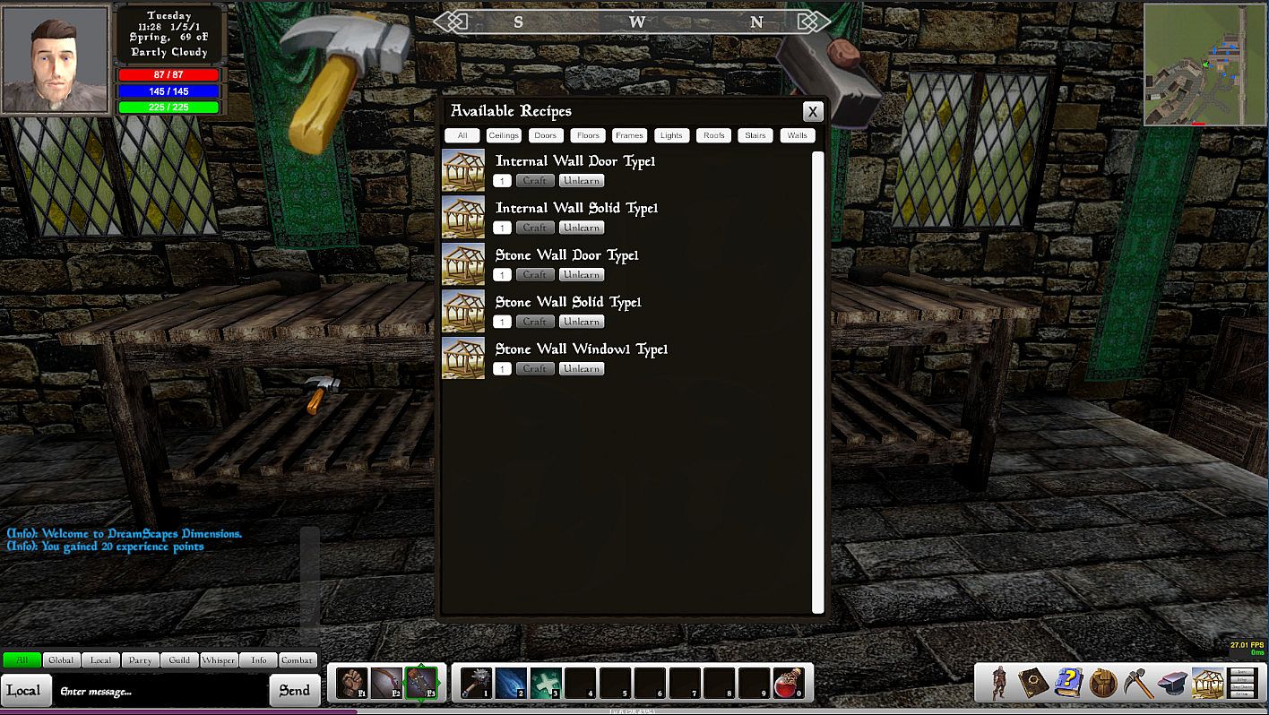 - Use your building resources to build player houses, castles, temples, etc.