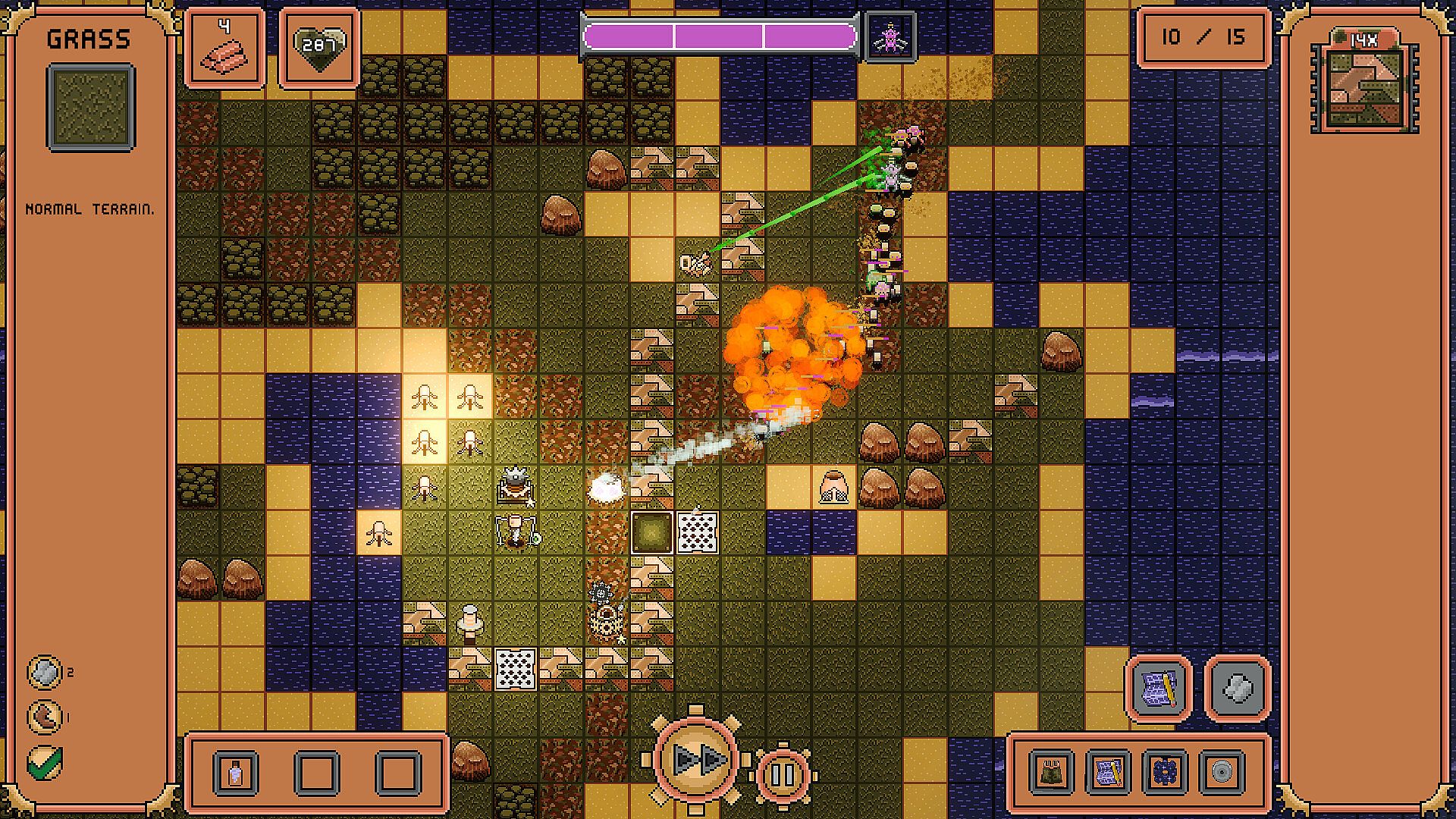 Use walls to guide the monsters as you wish! There are no predefined paths on the map, so create your own and lure the monsters into traps! The Tactical Mode assists in planning by showing you the path monsters will take in the next round.