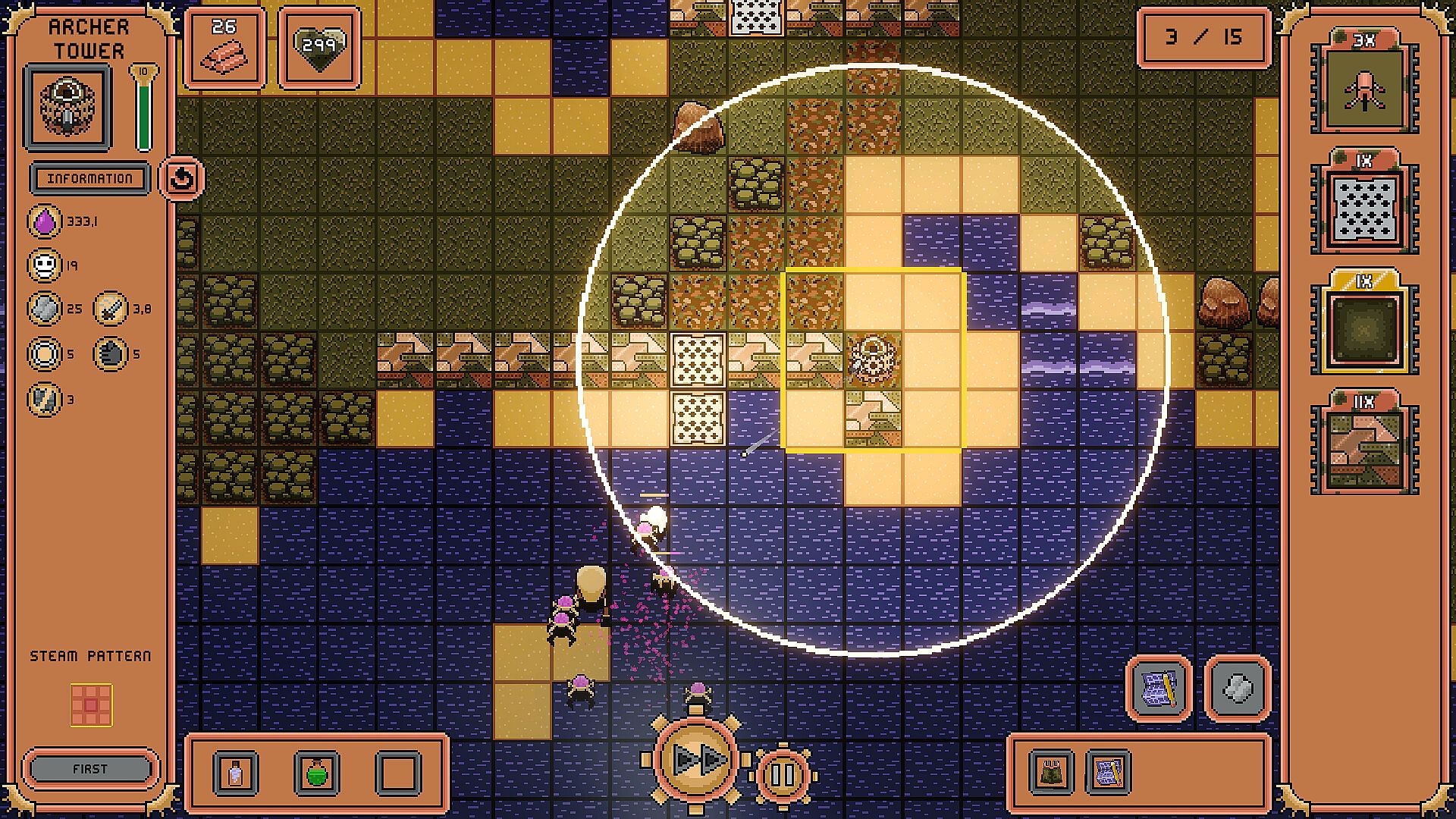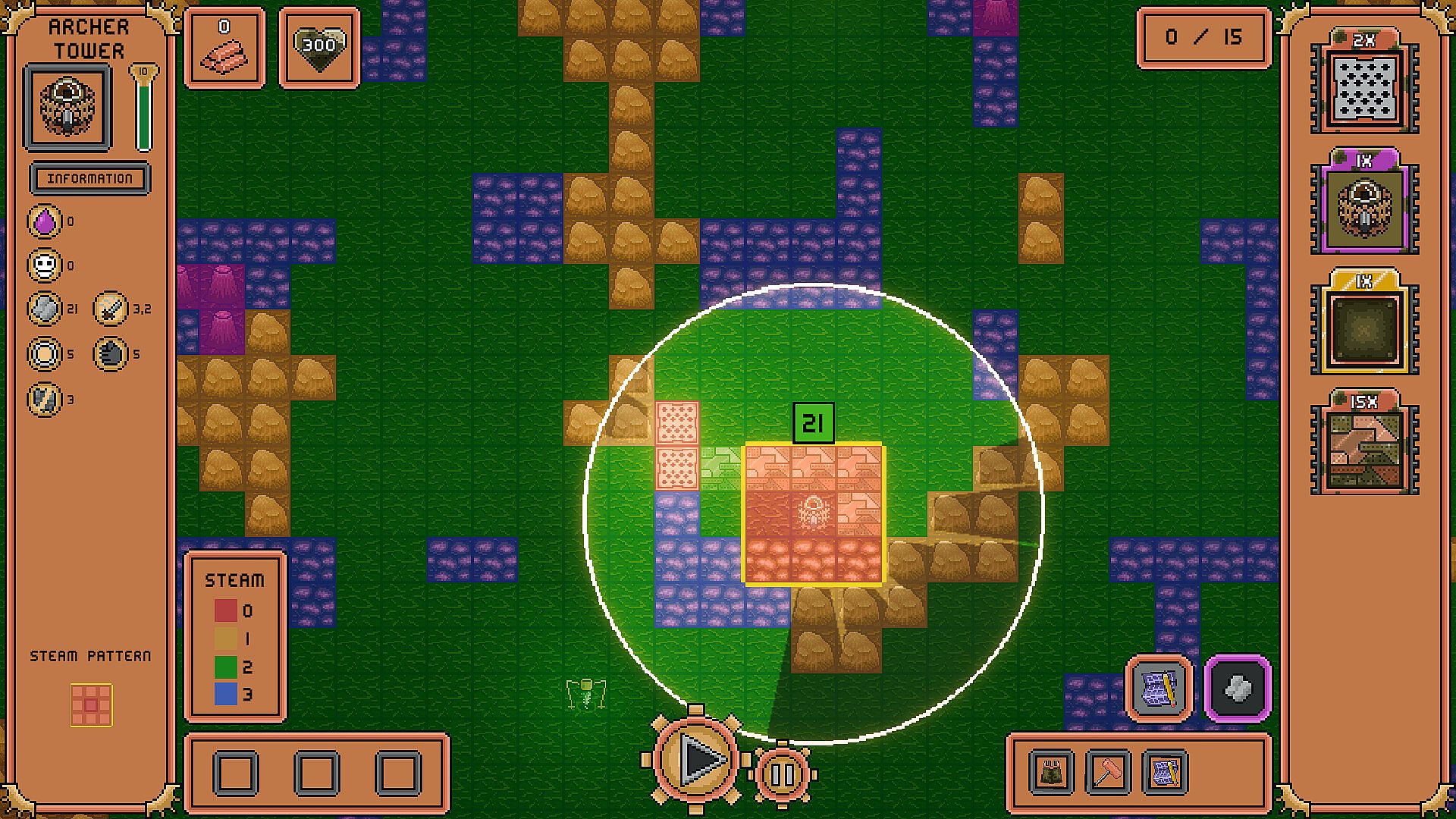 As towers consume steam from the tiles, you must cleverly piece together your base.