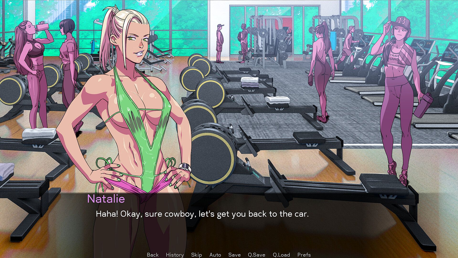 A busty, blonde bombshell. She is a fitness fanatic, spending hours at the gym, maintaining a body that would be the envy of a greek god… or a porn star.