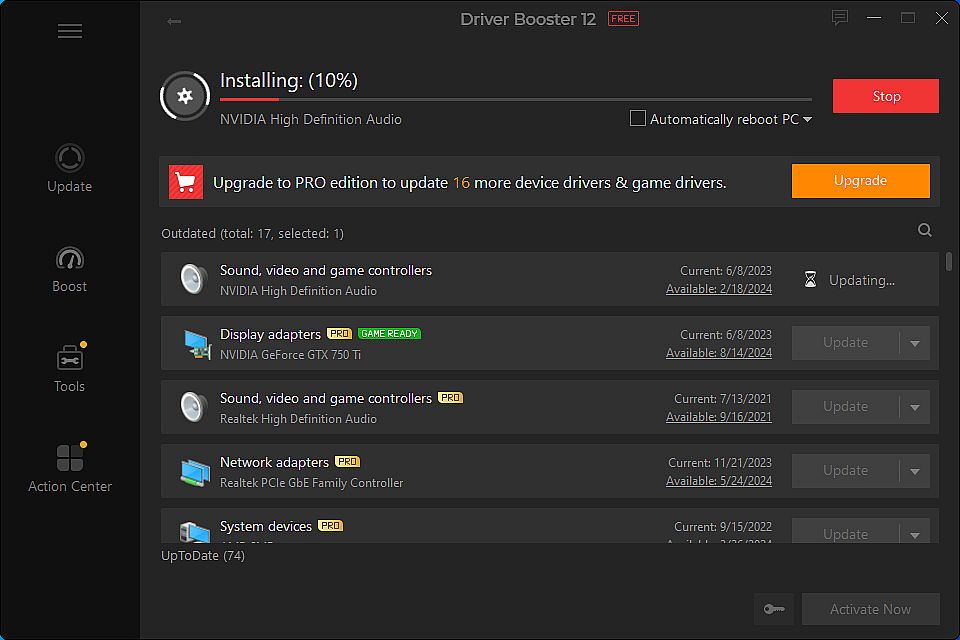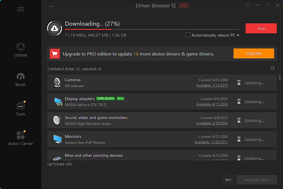 Feel upset encountering poor or sluggish game performance? Driver Booster for Steam is the utility you can turn to. Drivers tagged as Game Ready Driver can be updated automatically once released. These drivers can cover over 500 PC games to bring improvements for game performance and some bug fixes. Nowadays, you can update your Nvidia / AMD drivers for a better Cyberpunk 2077 experience.