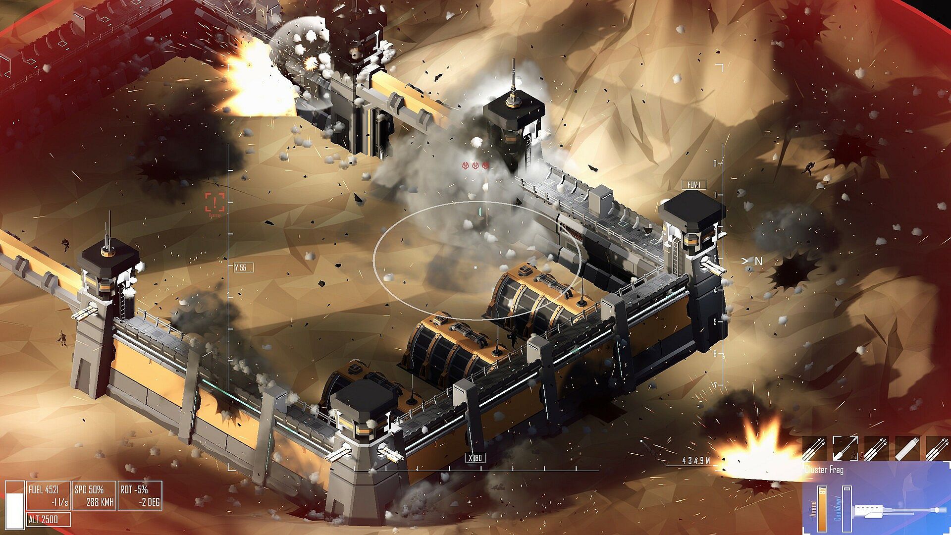 Drone Sector fuses the gunship close air support role with the drone's observation and mission command. Inspired by the real-life AC-130 gunship and MQ-9 Reaper drone, it merges these powerful roles in a futuristic setting, where advanced technology and heavier firepower enable you to take on more complex and dangerous missions. While not a pure military simulator, the focus remains on tactical planning and execution, with greater flexibility in mission design and weaponry.