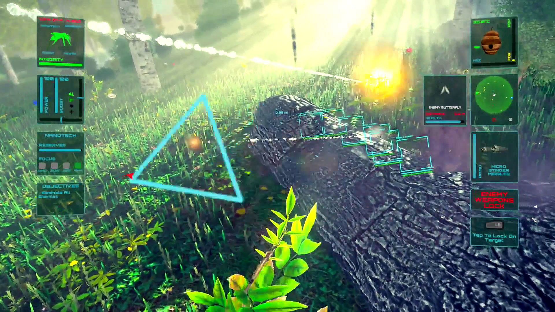 You are the remote pilot of the H-BEE 01 Drone Prototype, a tiny military flying machine that resembles a honey bee itself. Utilising nano-technology the drone packs an array of powerful weapons and advanced systems for the mission ahead.