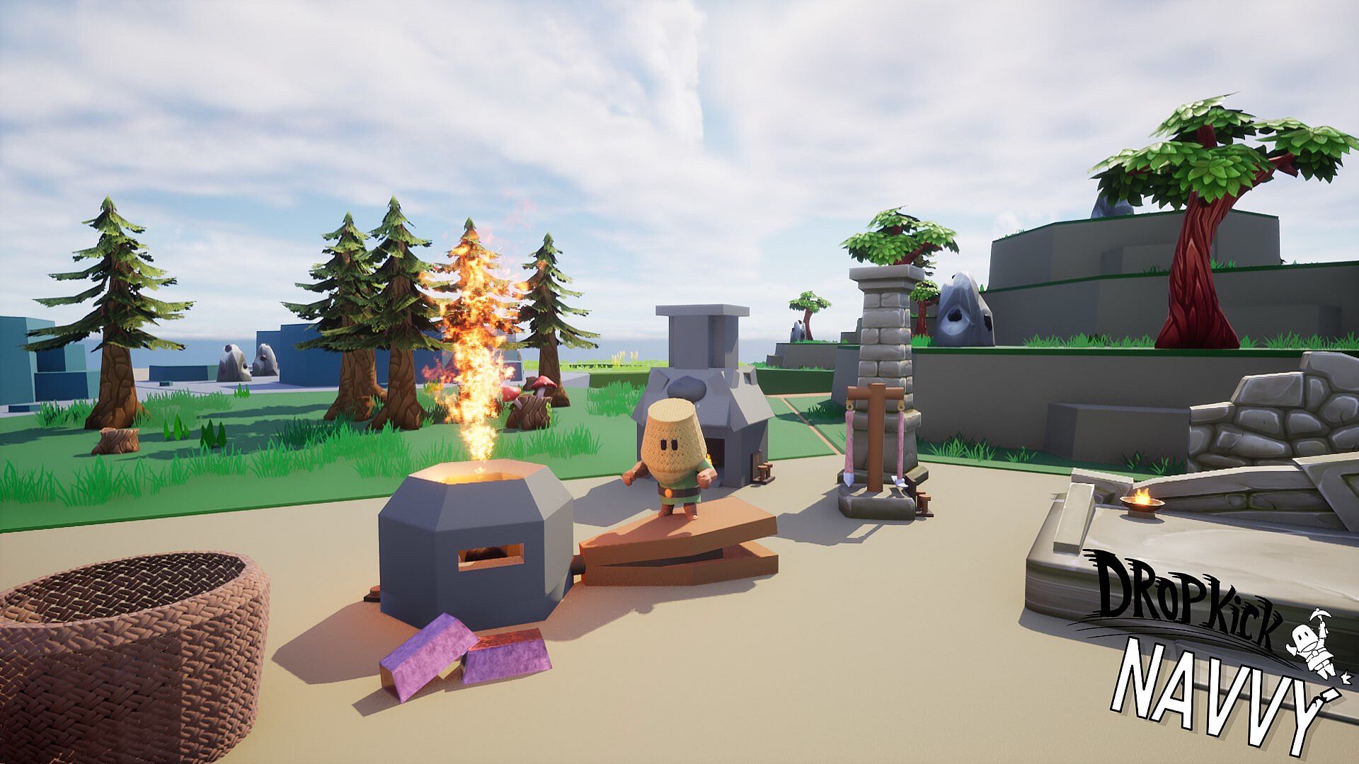 Go ham on rocks and trees with slapdash tools you made yourself, then pile 'em into your little wicker basket and wobble back to your workbench in charmingly precarious fashion.