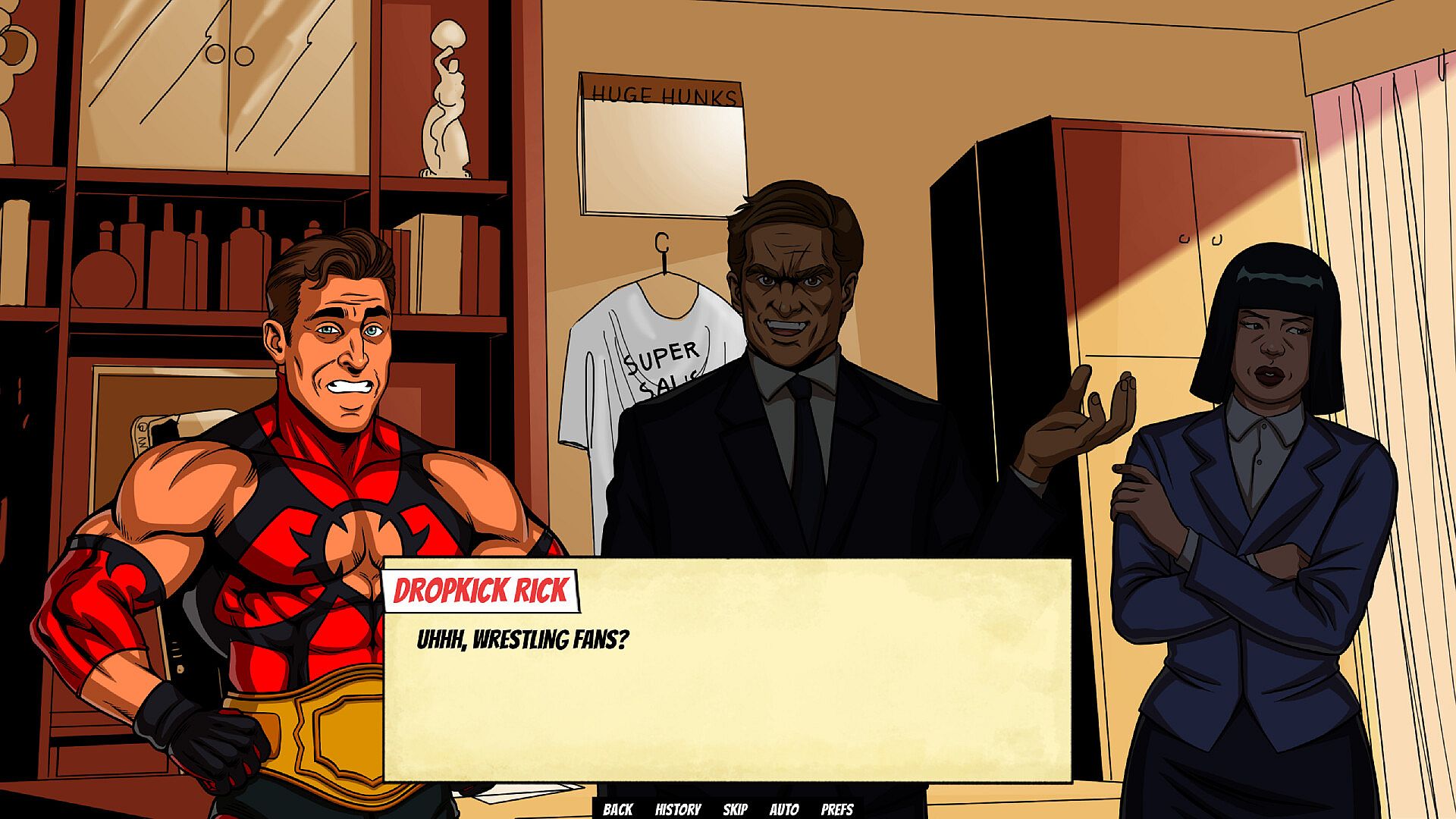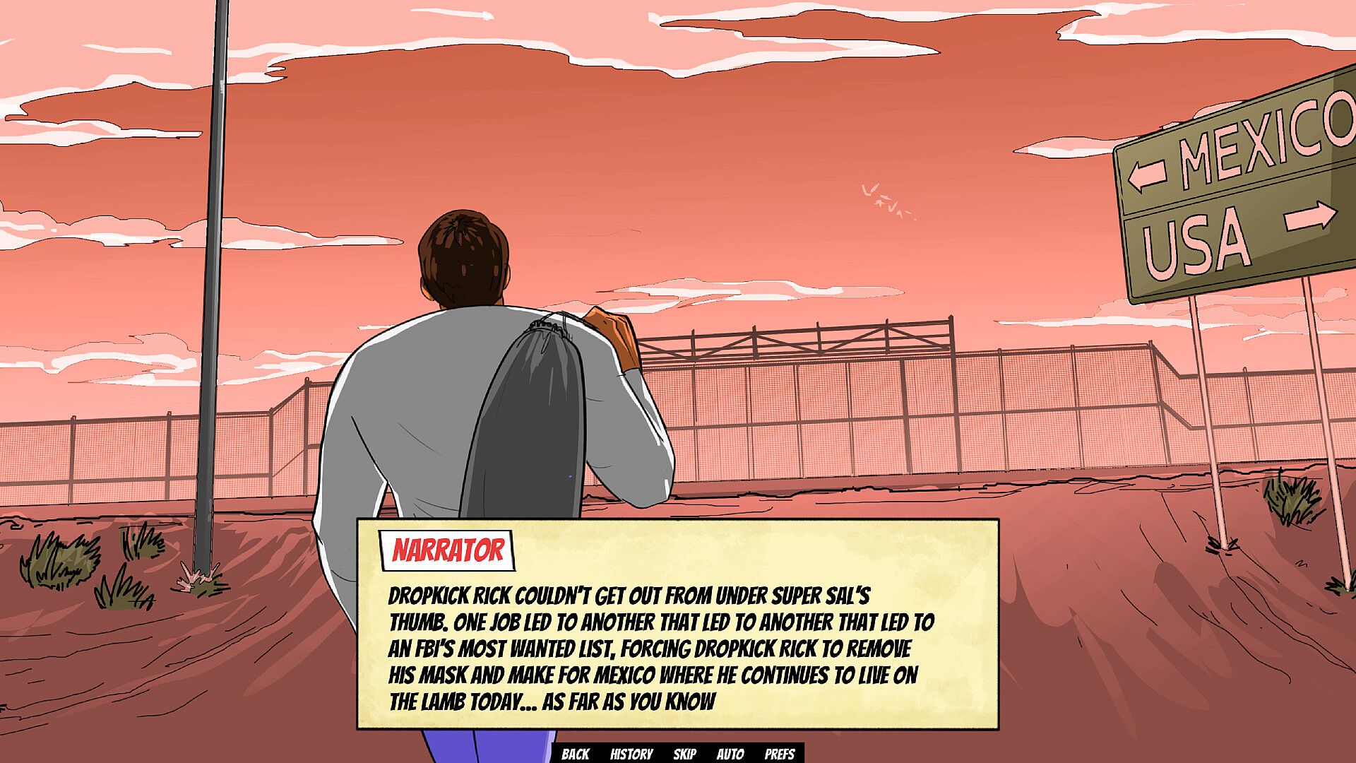 Dropkick Rick is a bold, fast-paced visual novel where your choices shape a series of unpredictable and oddly charming situations. You play as Rick, a has-been wrestler with too much confidence and too little luck. He’s impulsive, stubborn, full of bravado, but also weirdly charming in his cluelessness. Through branching choices and comic-strip storytelling, you’ll stumble through everything from awkward promos to bizarre dates to questionable career moves.