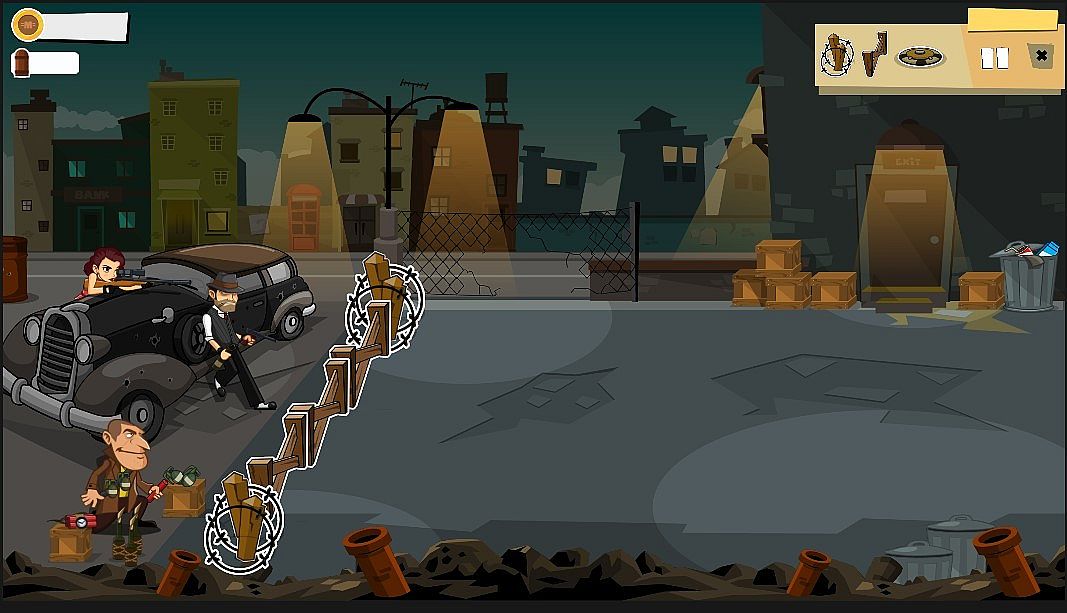You are not alone. you will have your two loyal friends to help you. Scarlet the Sniper and Pete the crazy bomber.