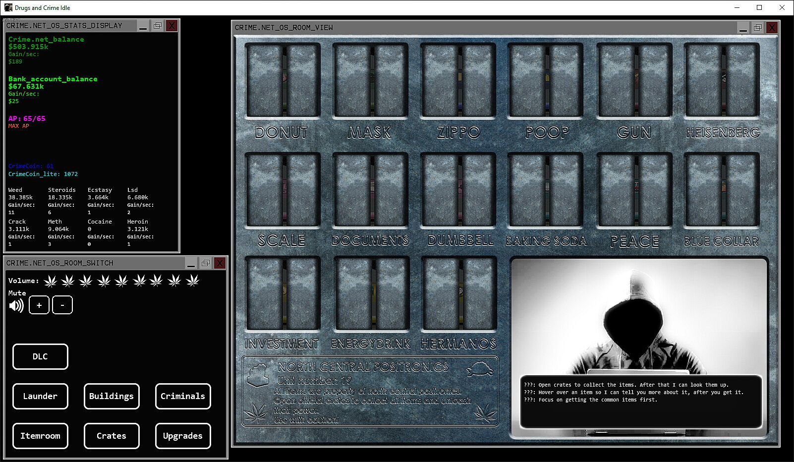 Before you start looking for a cheap Drugs and Crime Idle CD Key, take a moment to check the essentials. Developed by Roxy Constantine. Published by Roxy Constantine. PC released date: 10 Dec 2020. Genres: Strategy, Free To Play, Indie, Casual, Simulation. Categories: Single-player, Steam Achievements, Steam Cloud. Drugs and Crime Idle reviews: Steam reviews: 67% of the 277 user reviews for this game are positive.