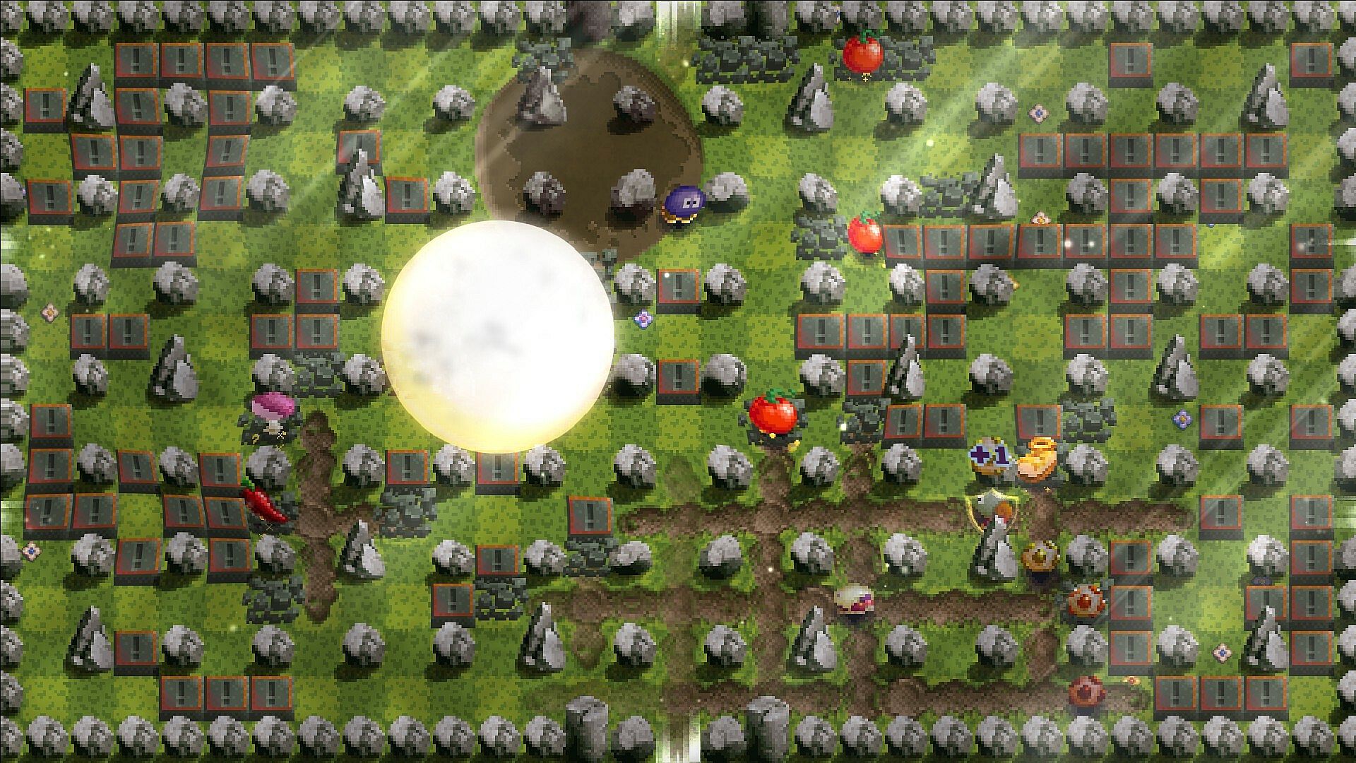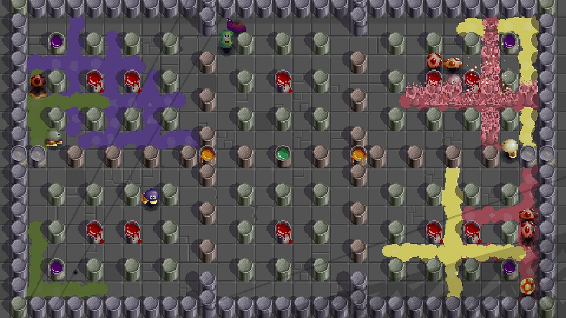 You have one minute to paint the maximum amount of ground area with your color to win the game. Kick the bombs to create Mega splash of paint or pick up random rare extra mushrooms with different effects that might help you, or not, on your path to victory.