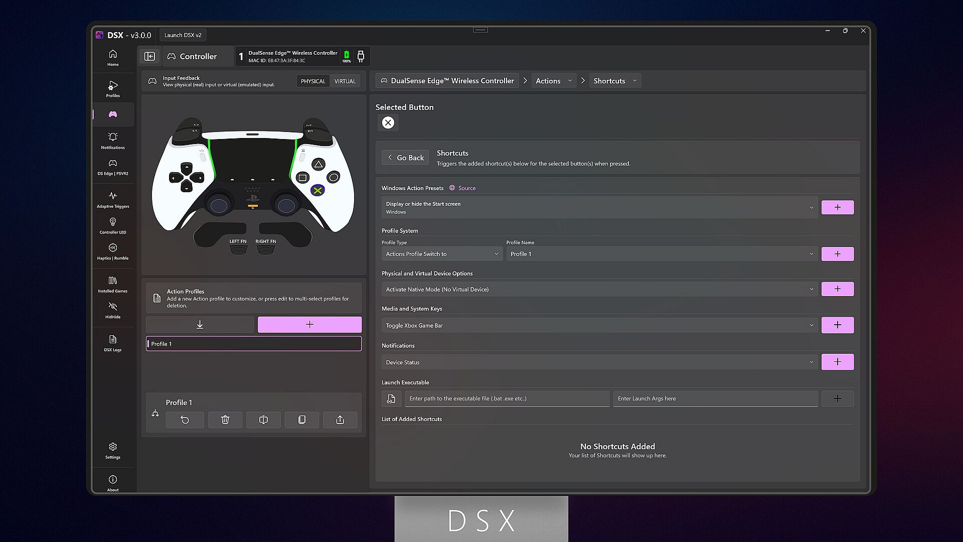 Take your gamepad gaming experience to the next level with DSX, a groundbreaking software that lets you fully harness the potential of your DualSense, DualSense Edge, and DualShock 4 controller on PC. Equipped with advanced features such as custom button profiles, custom lighting scenes, and input testing, DSX is the perfect tool for gamepad enthusiasts looking to elevate their gaming skills and immerse themselves into a whole new world of gaming. DSX aims to provide the best possible gaming experience for gamepad users on PC. Regular updates are rolled out to iron out any issues and introduce new features.