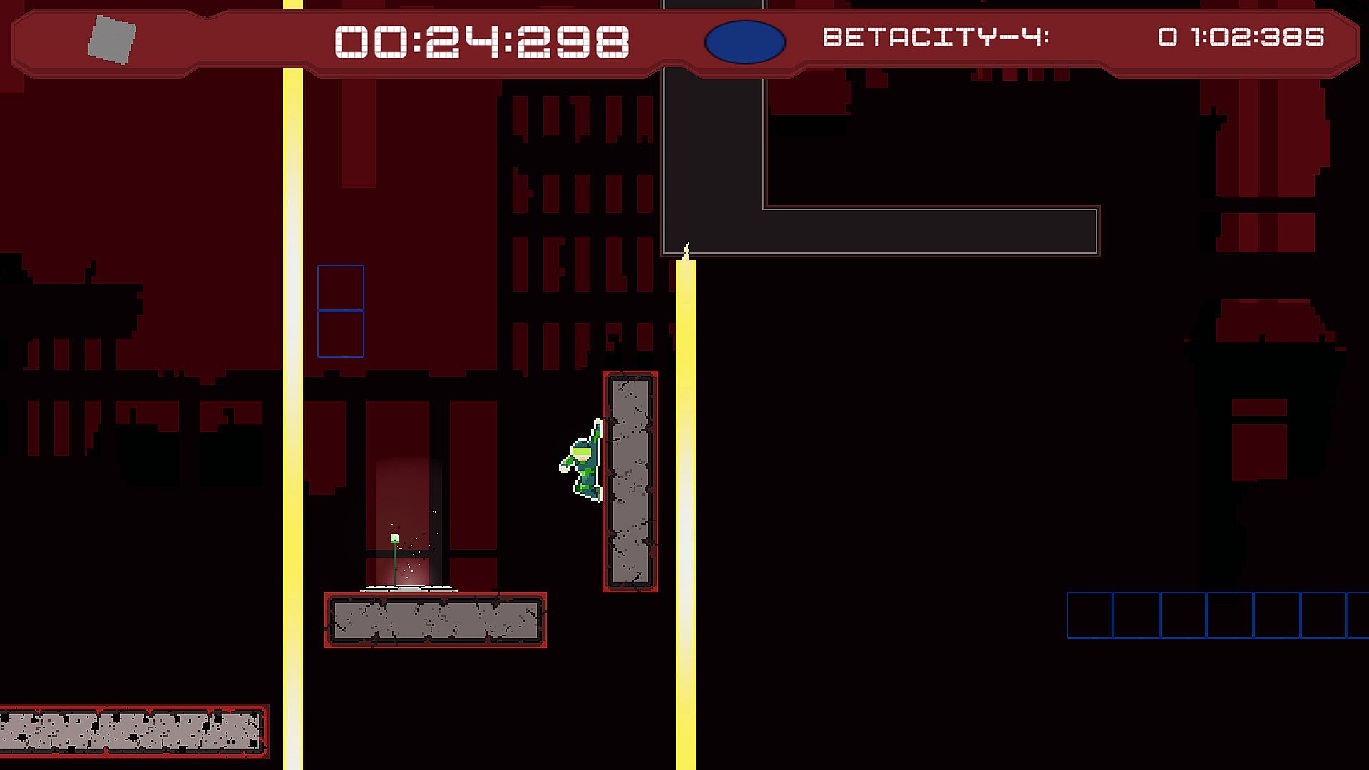 Precise 2D platforming mixed with fast-paced parkour, set in a retro atmosphere.