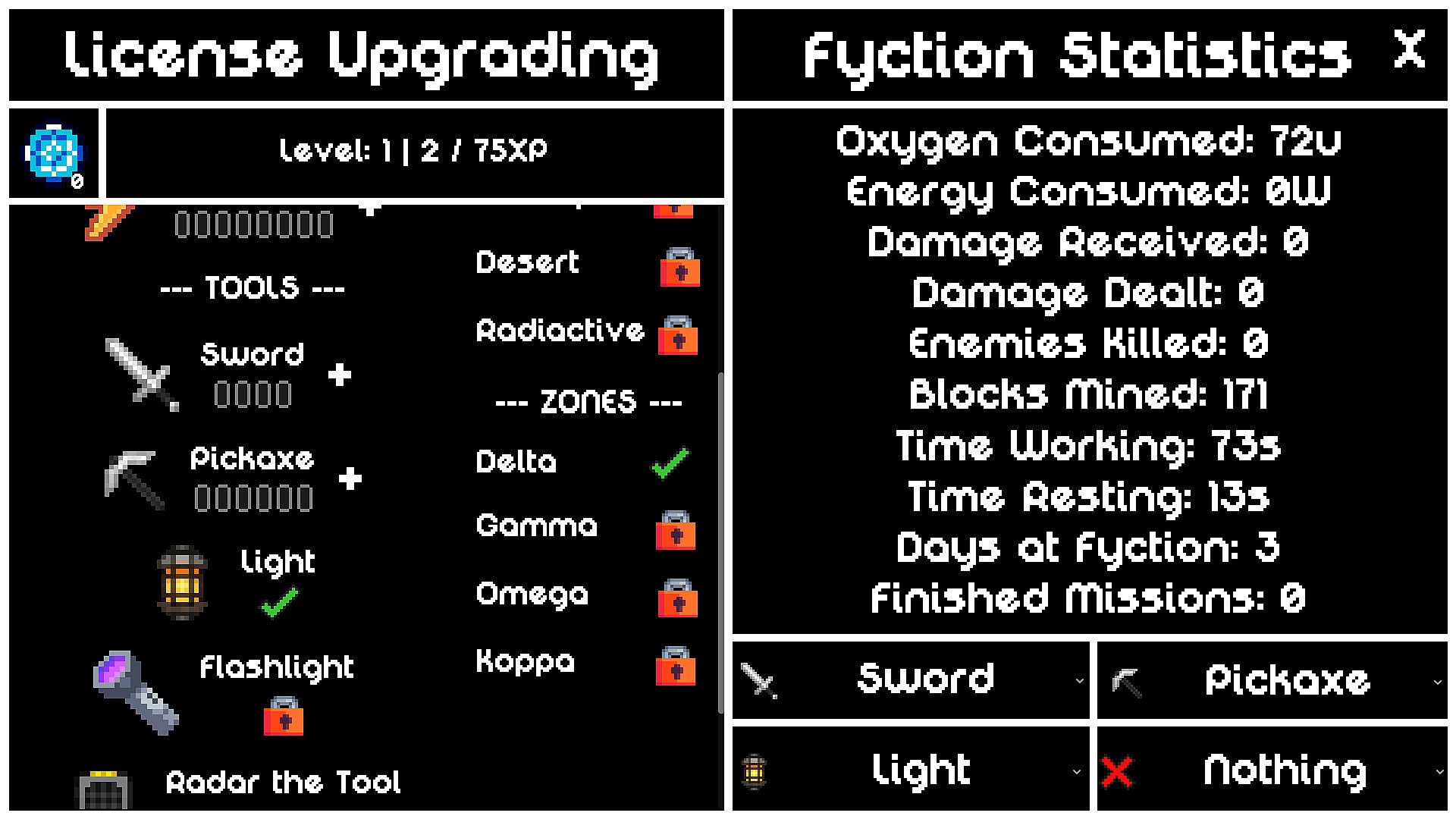 Now contracted by Fyction Enterprise, your mission is to extract space resources, destroy asteroids, and fight off monsters. If you survive, you can upgrade your tools and your Fyction License to explore deeper into the Solar System. Craft and manage new items to sell on the market and recover from your debt.