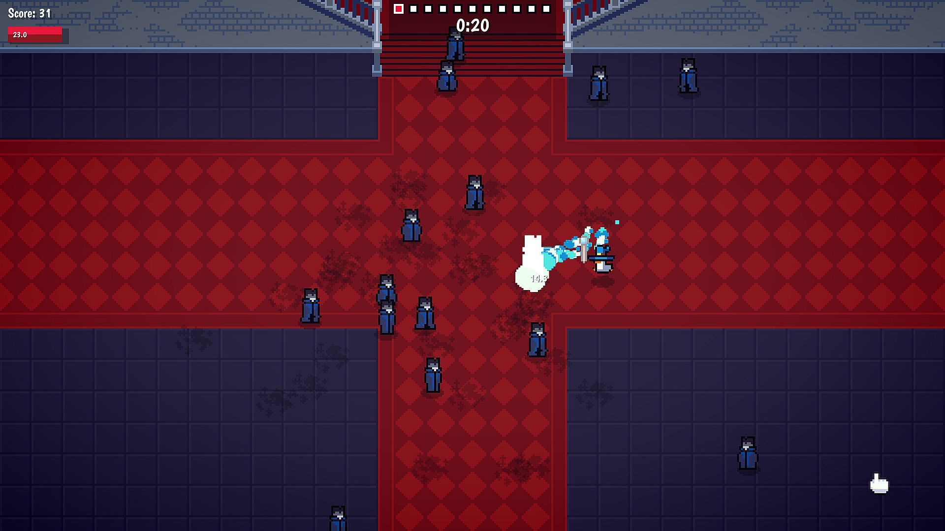 Fight waves of enemies in an arena with auto-firing staffs. And customise your spells in between waves by buying cards with effects such as "split on hit" or "swirl".