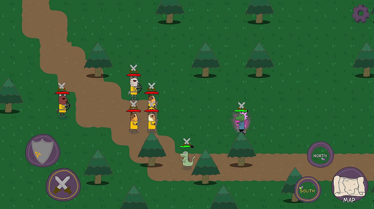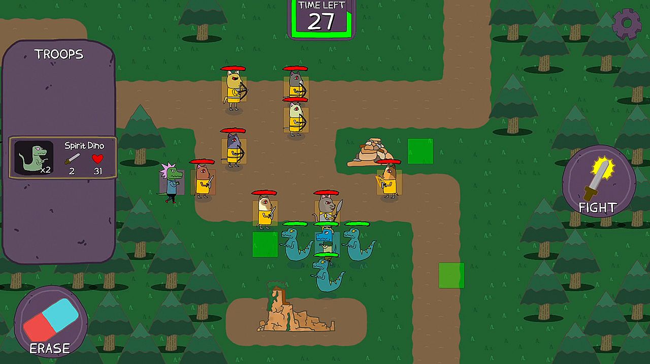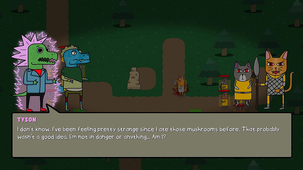 Dum Dum Dinos is set in Mogelis, a fantasy world occupied by an opposing (and semi-competent) cat army. Although most of the cat army is made up of unqualified grunts clinging to the impossible dream of obtaining a lucrative job with benefits, there are also some skilled fighters among their ranks who will stop at nothing to fulfill their duty and take over the land. However, these cats aren't the only ones with a bachelor's degree in kicking butt - the local resistance won't give up their land so easily.