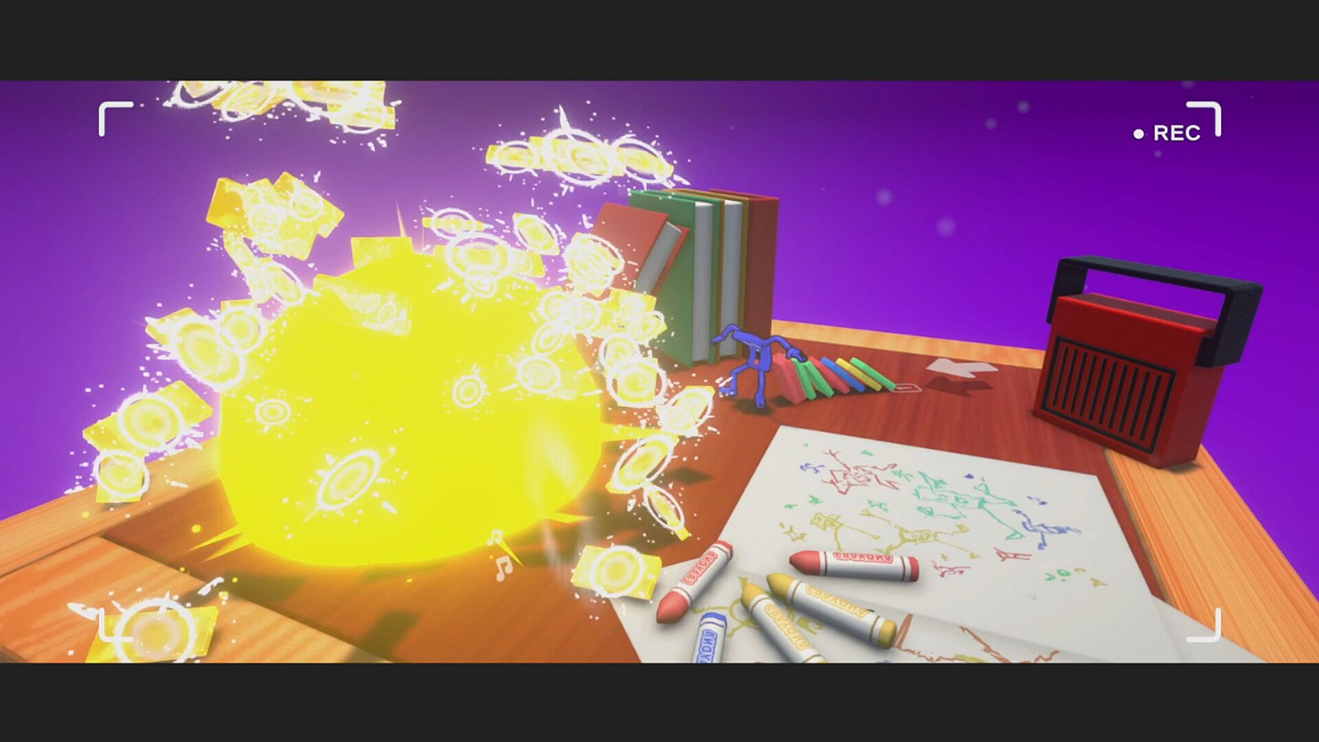 • Over-the-top physics fueled with dozens of objects for even more unhinged domino toppling