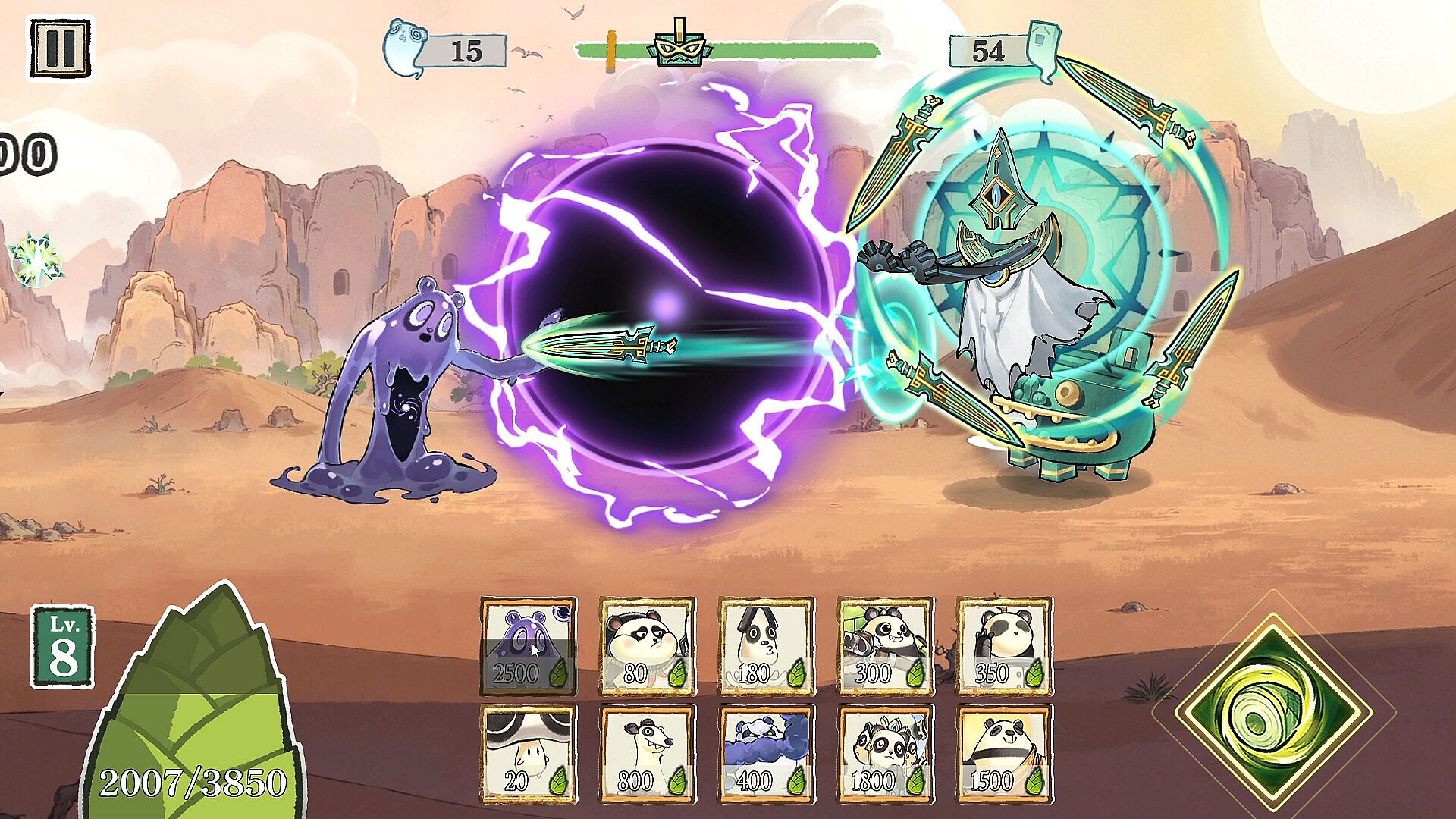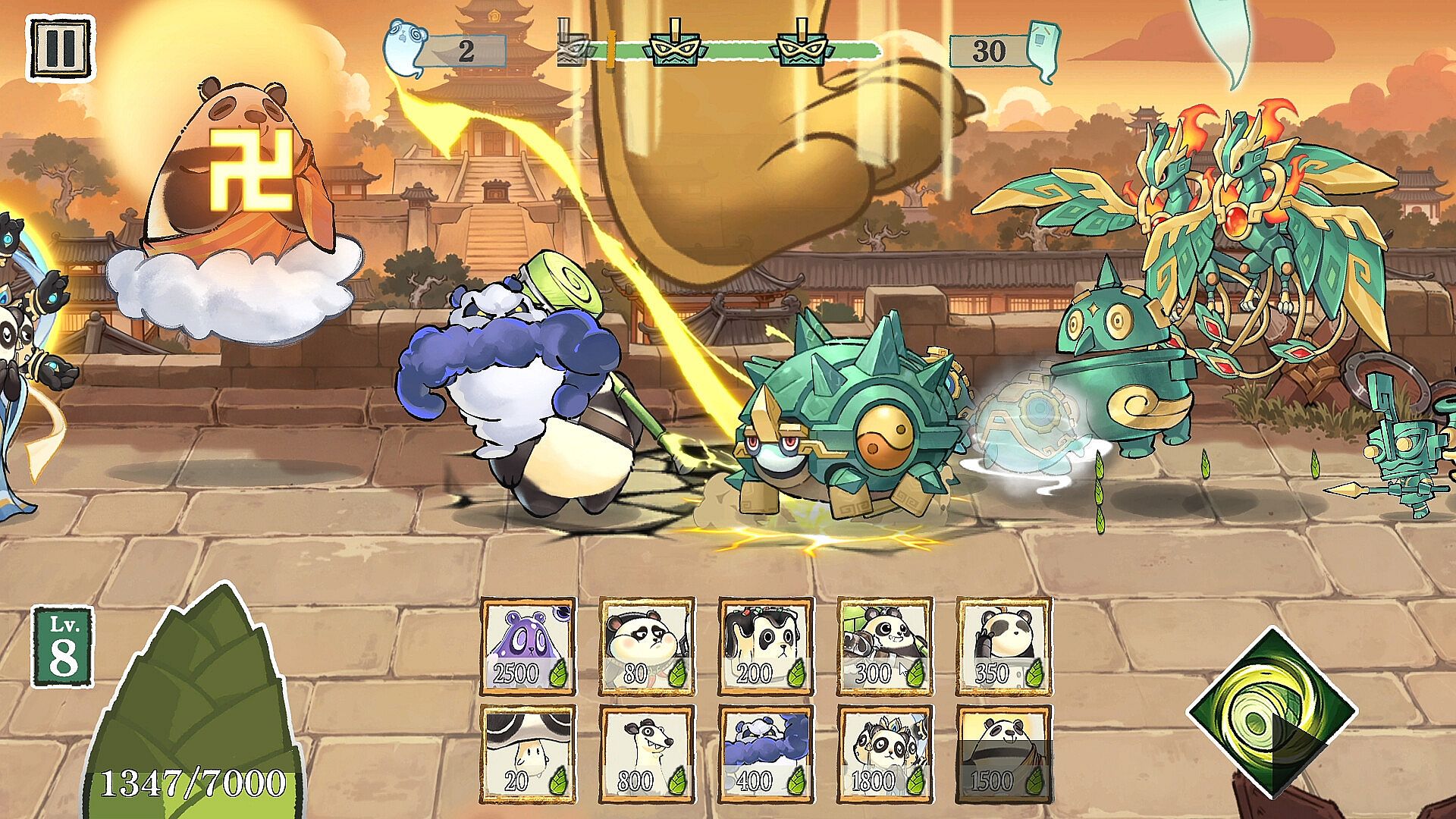 每个熊猫都有其独特的战斗方式,带上熊猫伙伴与发疯的青铜怪物战斗!