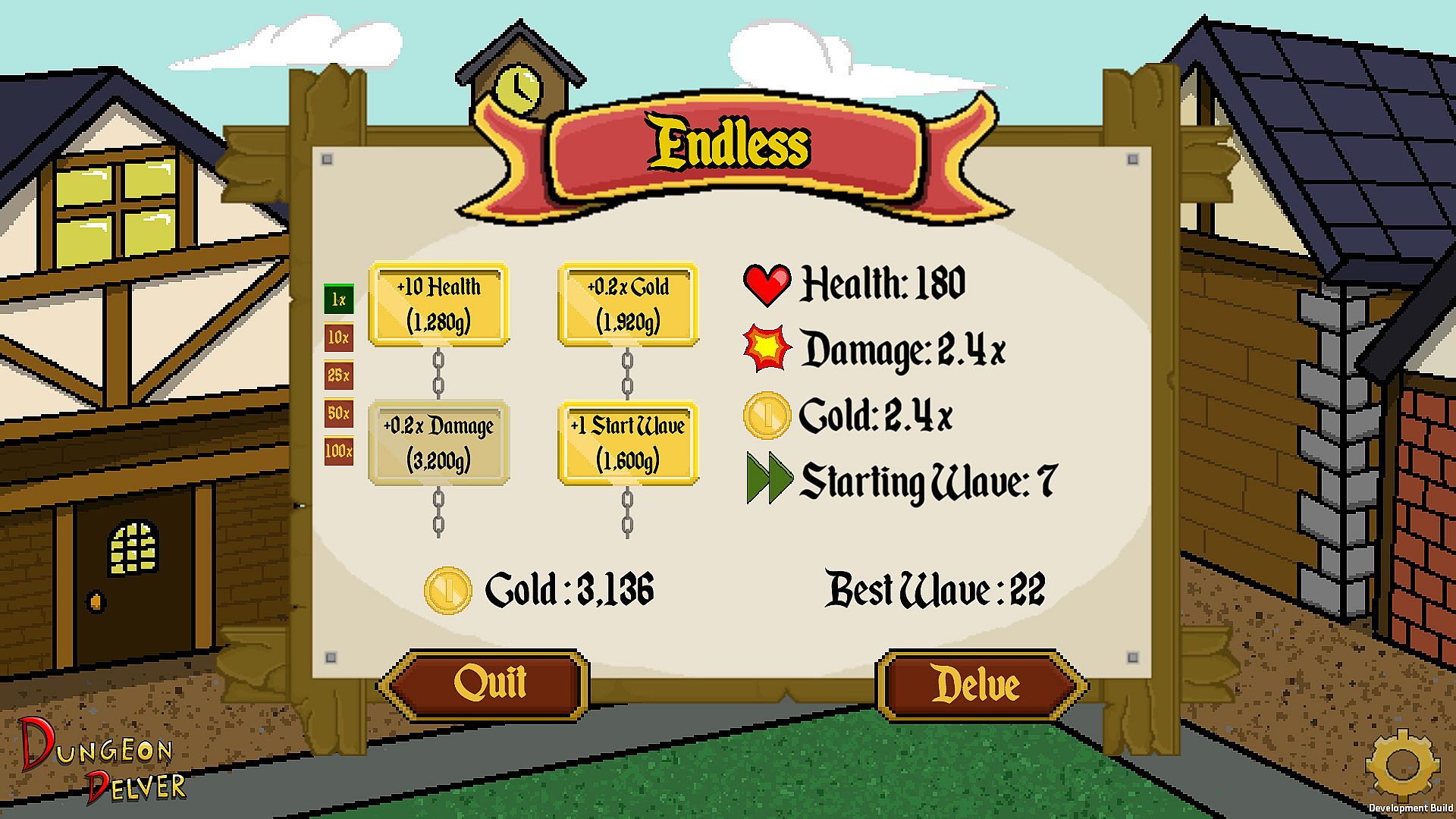 In endless mode, battling your way through waves of enemies will earn you gold that you can spend on permanent upgrades to your character. Additionally, during your delves you will sometimes come across Runestones that will grant you a choice between a set of powerful augmentations to your abilities for the remainder of that delve.